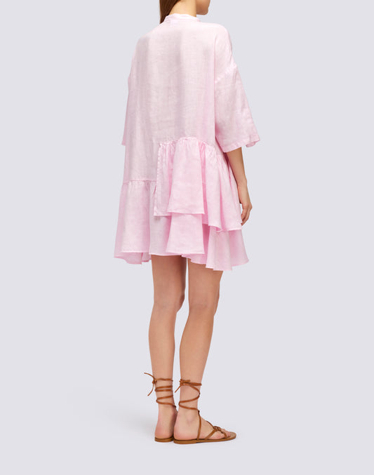 CHEMISE EN LIN TEINT EN PIÈCE AVEC COL MAO