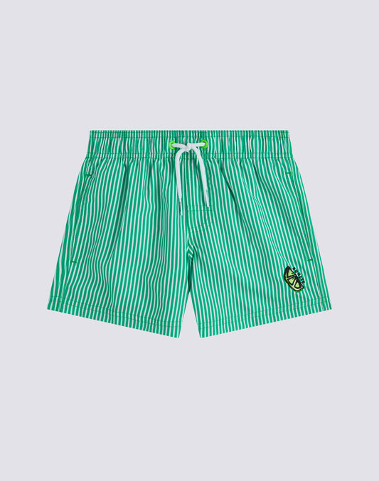 MAILLOT DE BAIN COURT À TAILLE ÉLASTIQUE EN POLYESTER RECYCLÉ REPREVE® AVEC IMPRIMÉ À RAYURES JUICY ET BRODERIE FRUITS