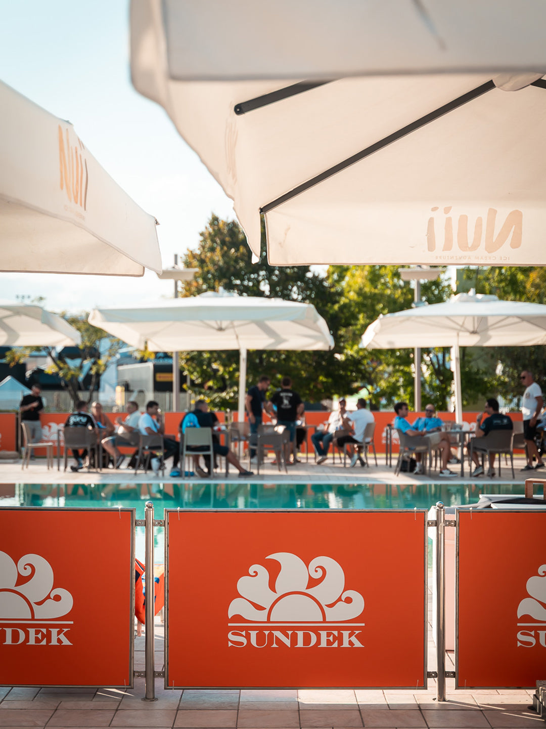 On the weekend of September 12, 13, and 14, 2025, Sundek hosted a highly visible event in Misano. We were the Official Partner for the exclusive event in the pool area behind the circuit. We brought our sunny and dynamic spirit to a unique setting, creating an unforgettable atmosphere. In the Deluxe Area, we celebrated the brand's DNA with an exhibition dedicated to our iconic boardshorts.