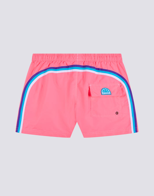 ICONIC TAFFETA ELASTICATED WAIST SHORT SWIMSHORTS WITH RAINBOW EMBROIDERY