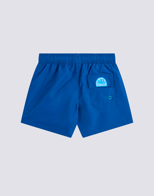 ICONIC TAFFETA SHORT-LENGTHS BOY’S SWIMSHORTS WITH ELASTICATED WAIST AND PIPING