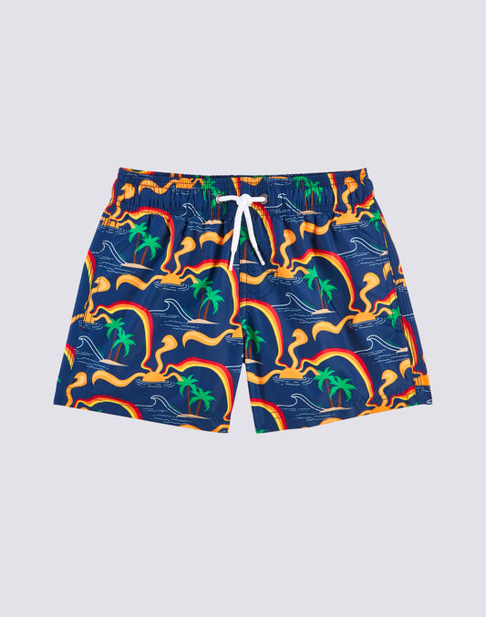 RECYCLED POLY SHORT SWIMSHORTS WITH ELASTIC WAIST SUNCUBE PRINT