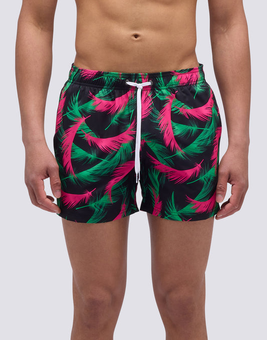 RECYCLED POLY SHORT SWIMSHORTS WITH ELASTIC WAIST MULTIPALM PRINT