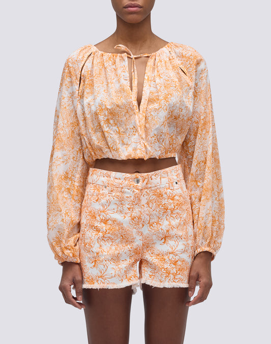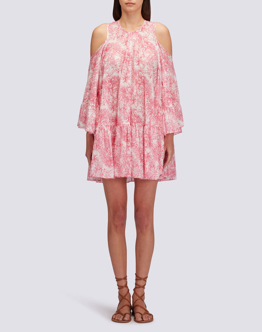 FLEUR DE JOIE PRINT COTTON VOILE SHORT DRESS