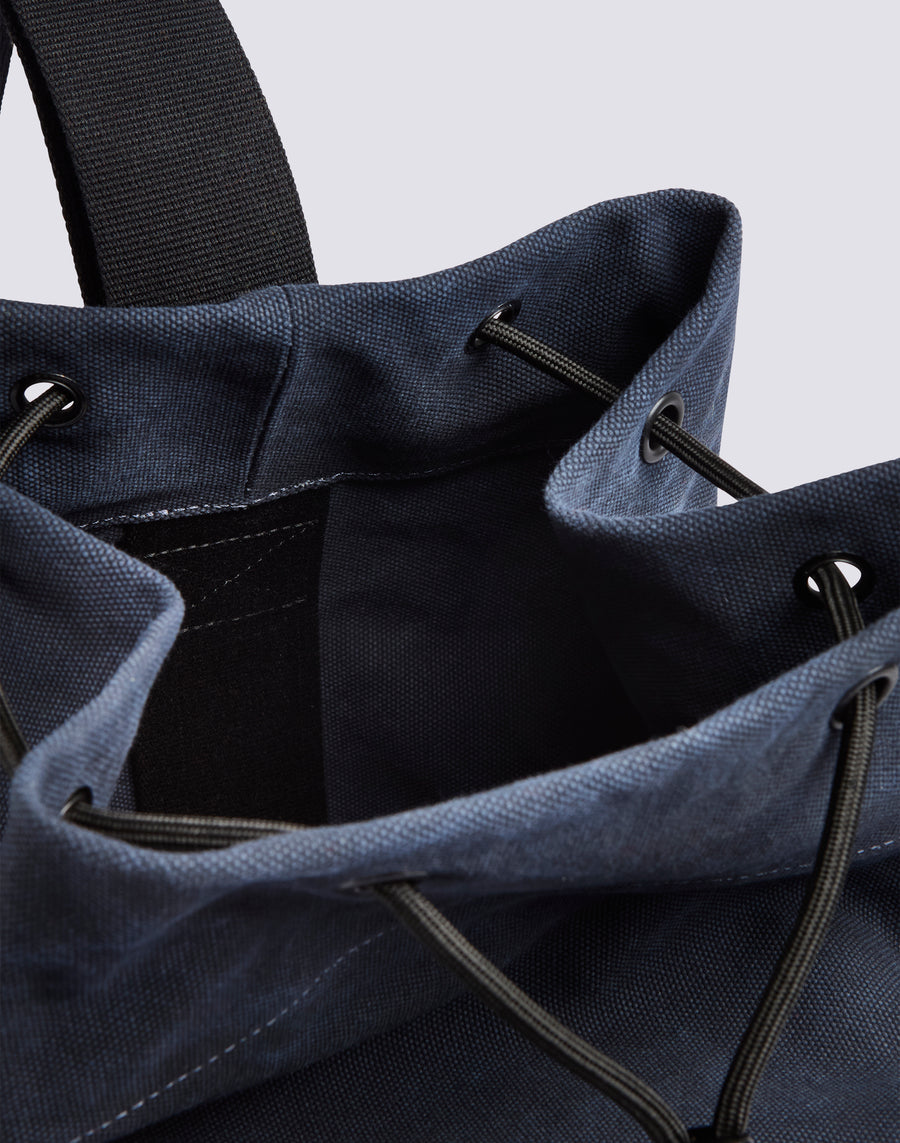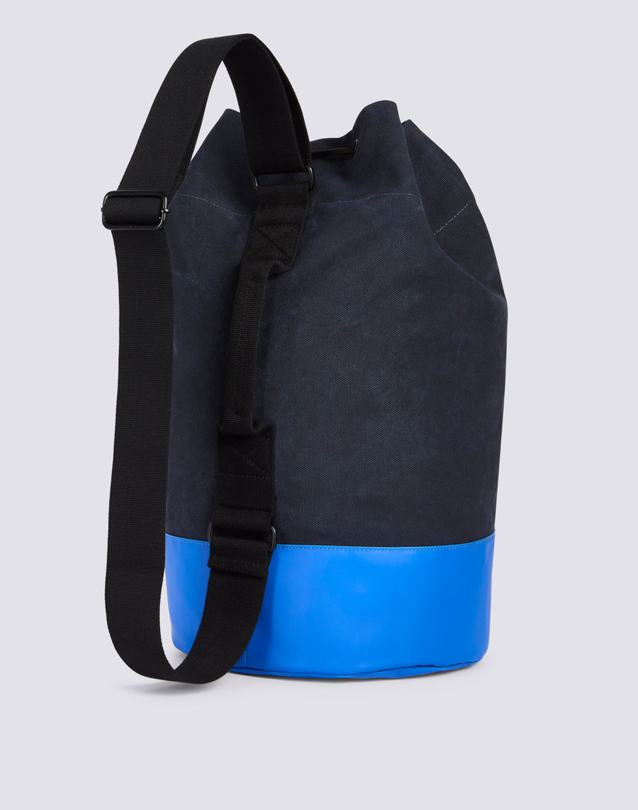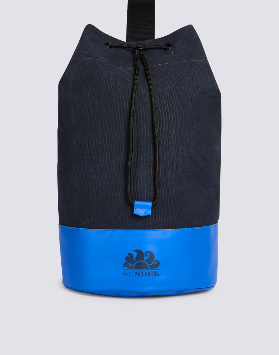 Cotton shoulder bag with drawstring closure, contrasting colour blocks and logo printed on the front. A technical, spacious, essential bag.