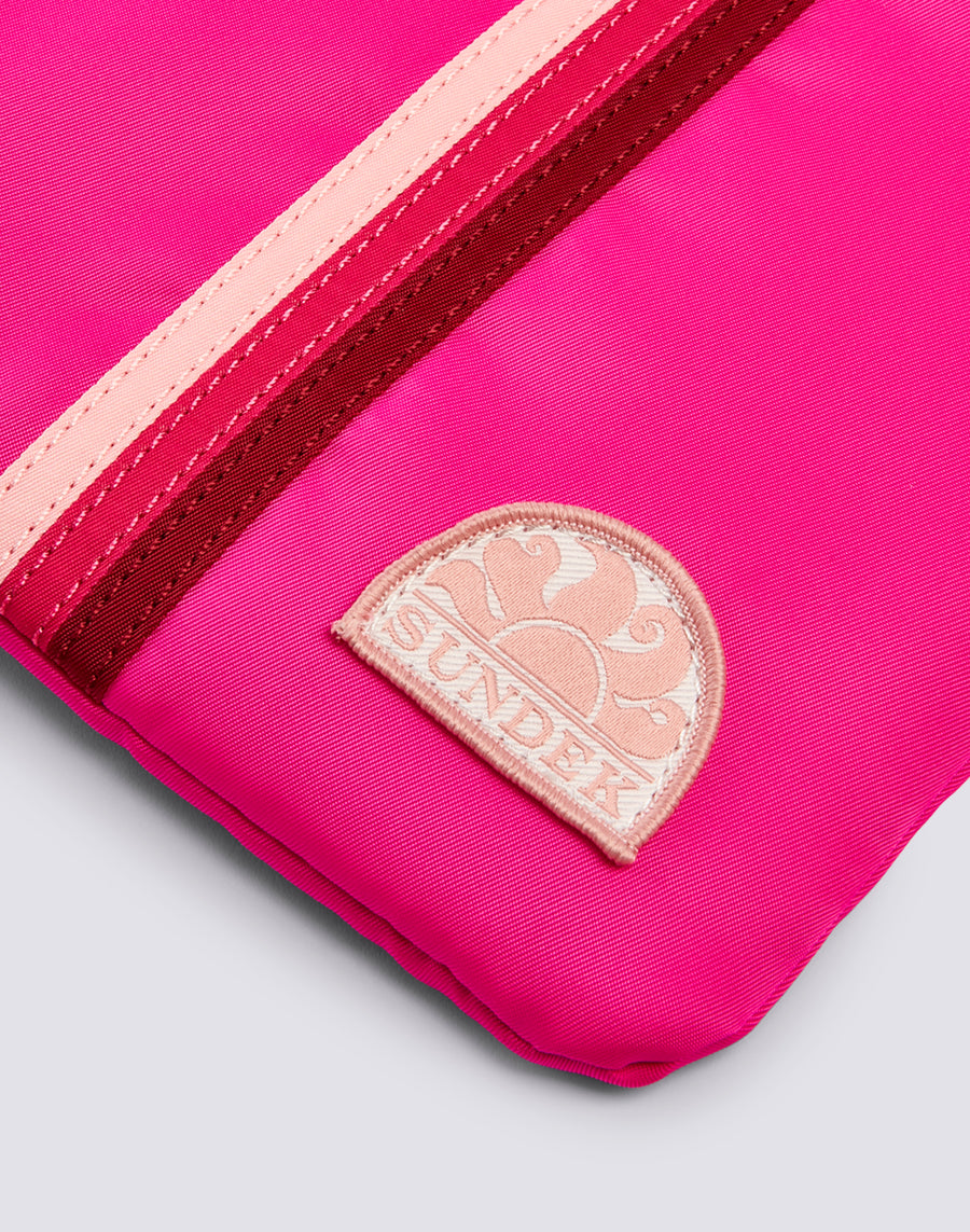Lightweight, lined beach clutch bag with the iconic tricolor ribbon detail to store and protect the essentials you prefer to keep close at hand. Perfect to carry in your bag or alone thanks to the practical hand loop.