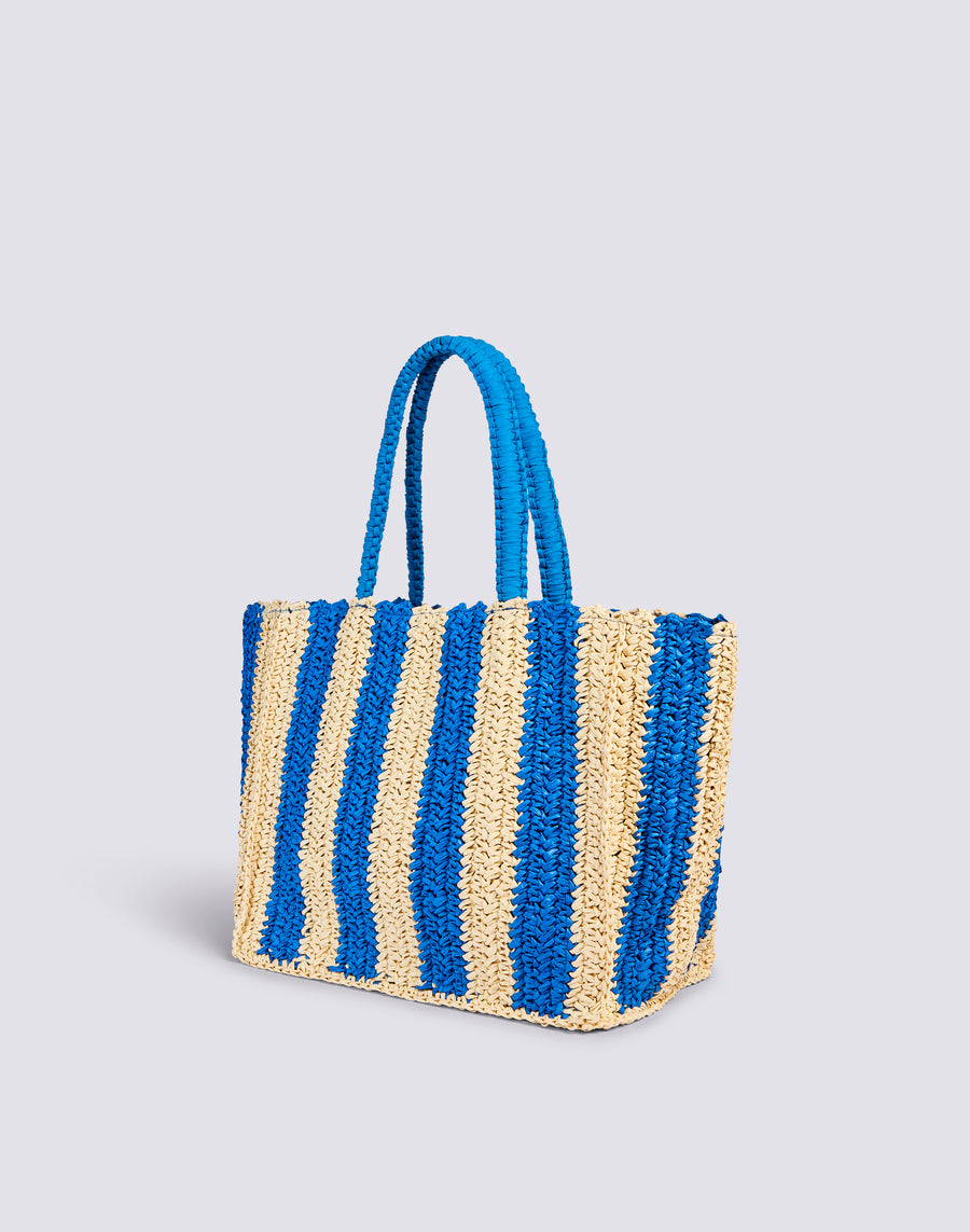 Striped Paper Straw bag with handles, zip closure and embroidered Sundek logo. Ideal for the beach, to bring with you everything you need for a day at the beach.