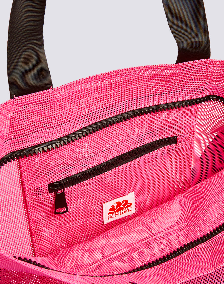Mesh beach bag with large Sundek logo. Roomy and ideal for carrying everything you need for a day at the beach.