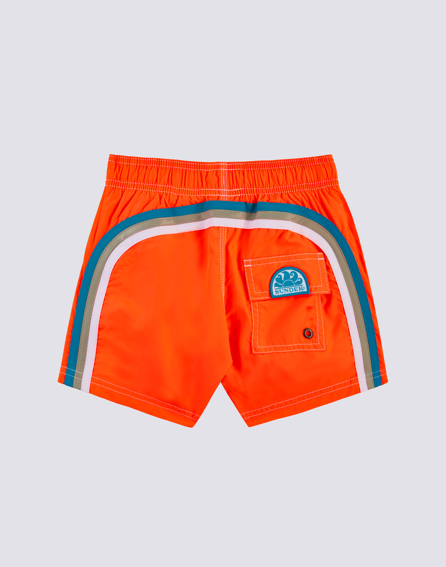 Intense color and hyper-comfortable quick-drying fabric for these baby boy beach shorts. A model that will accompany your child in his many activities on vacation, perfect for moving and playing in complete freedom.
