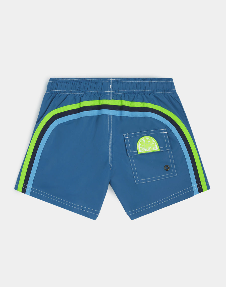 Intense color and hyper-comfortable quick-drying fabric for these baby boy beach shorts. A model that will accompany your child in his many activities on vacation, perfect for moving and playing in complete freedom. is made of our historic nylon-taffeta fabric and constructed with three-needle stitching that makes it durable over time. To pack year after year.