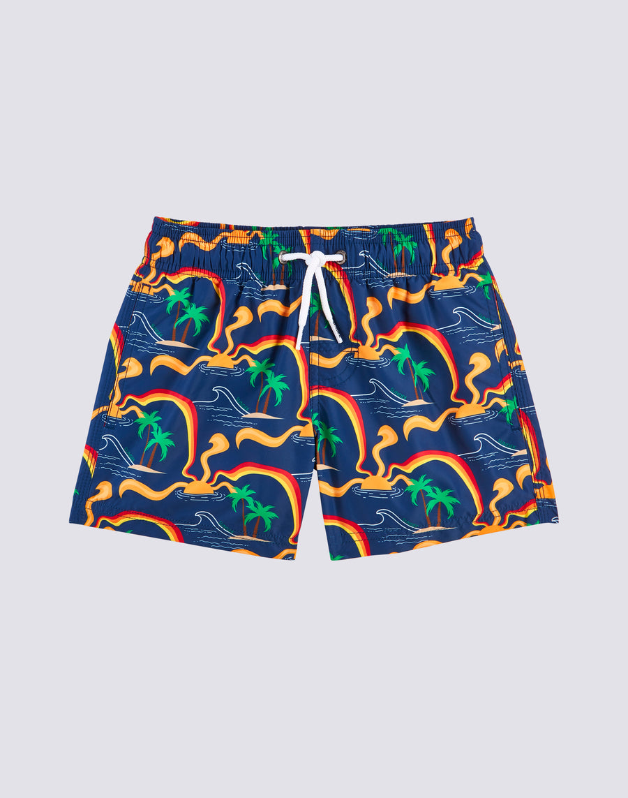 Experience summer in color with this children's recycled poly Sunshine print short swimsuit.