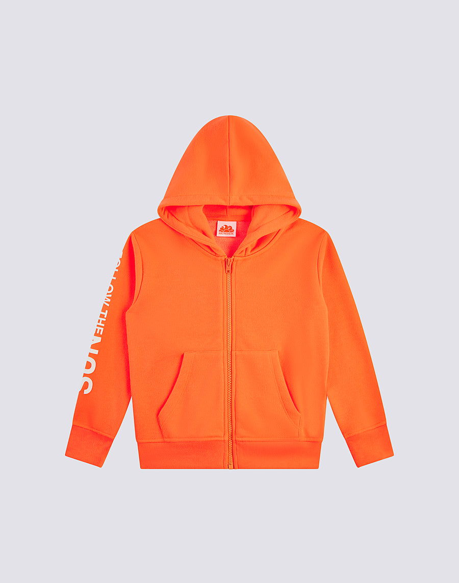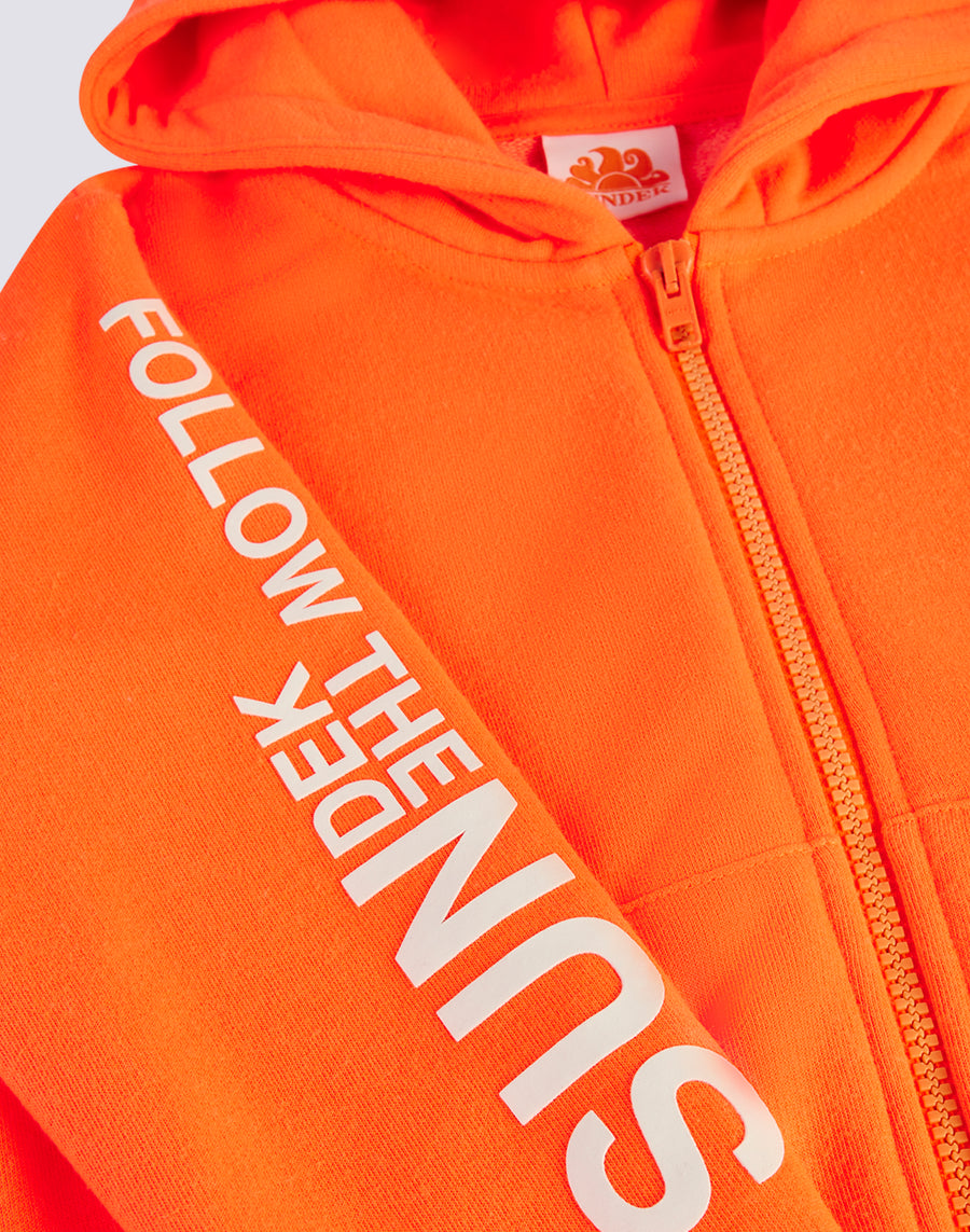 Sweatshirt with hood and zip, versatile and easy to combine on many daily occasions: for going out, for playing and doing sports. A versatile garment, always current, to immediately add to your wardrobe.