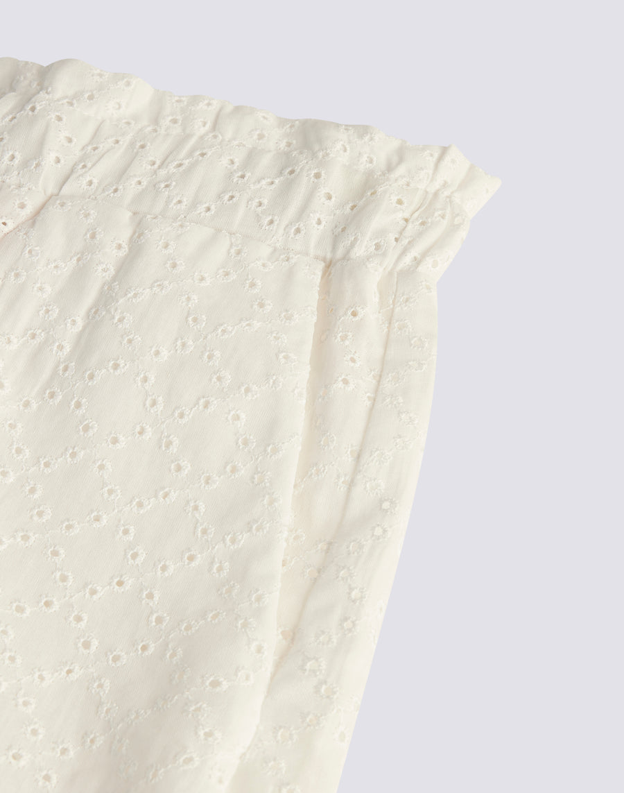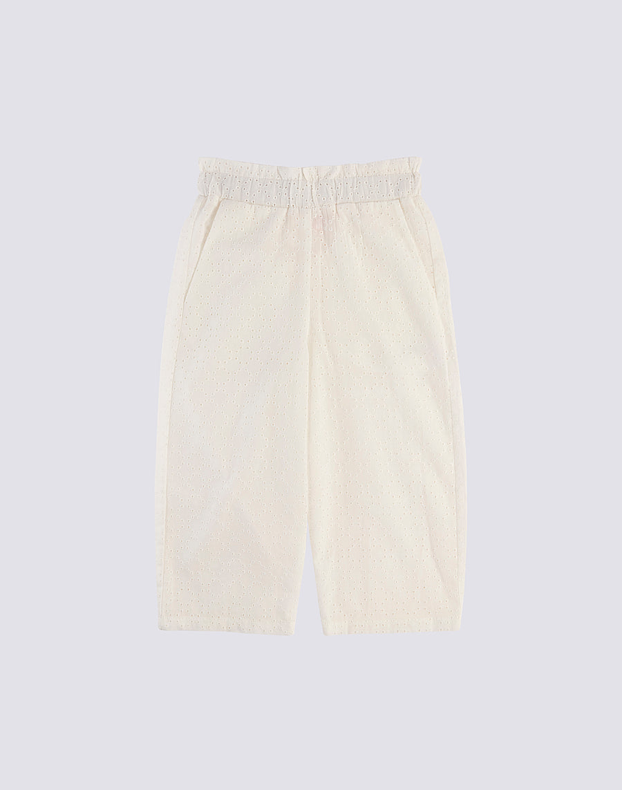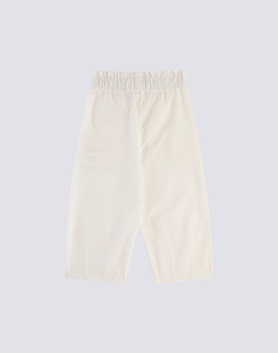 Refined girls' sangallo cotton pants with elasticated waist. For elegant occasions, ideal to pair with a blouse or tee.