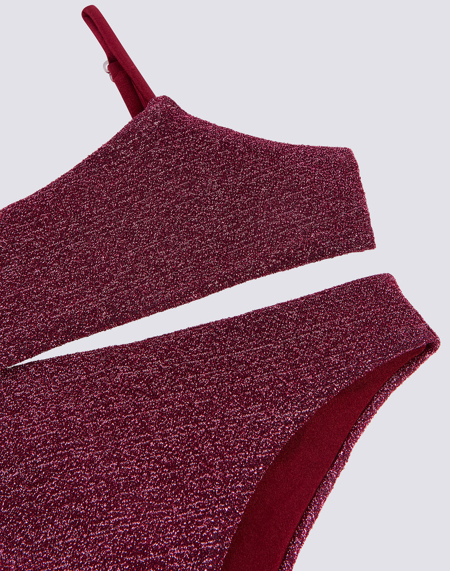 64% PA 36% EA Shiny lurex fabric, comfortable and with lining that guarantees a soft contact with the skin.