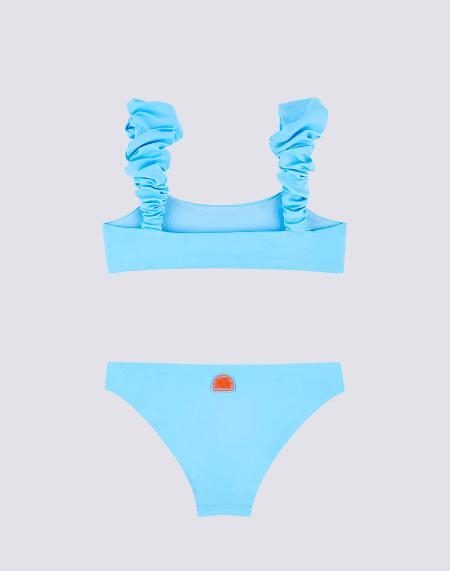 Elegant bikini composed of ruffled top and fixed bottom. For little girls who don't want to go unnoticed.