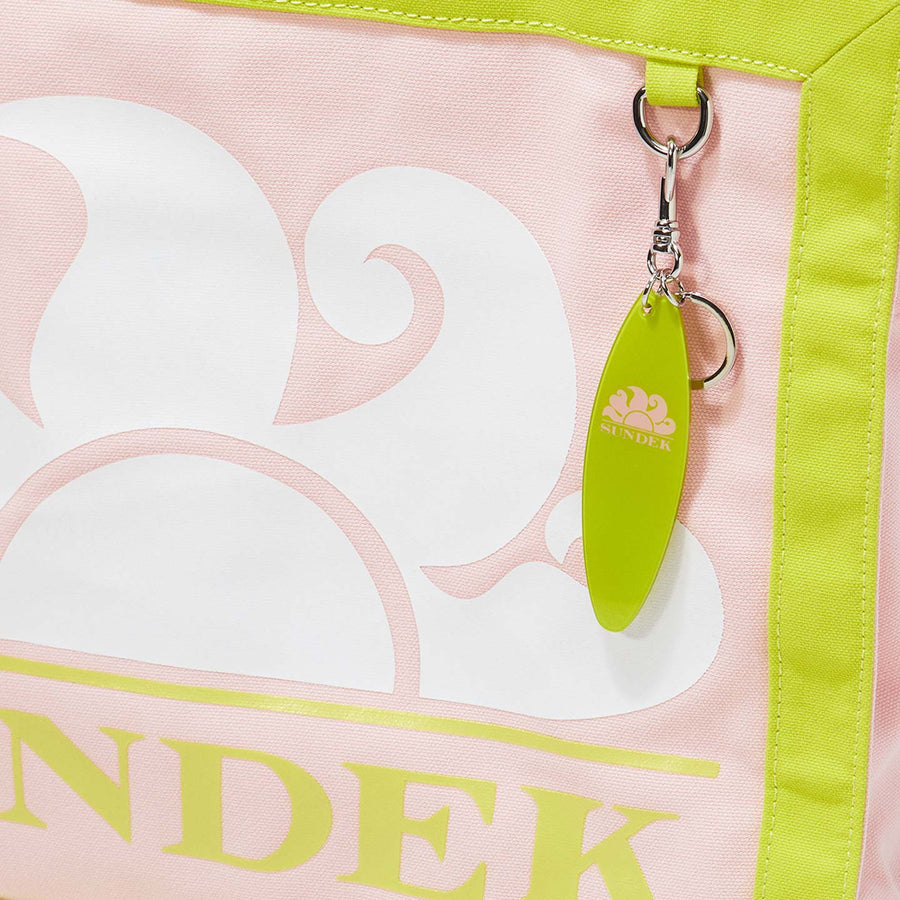 Canvas beach handbag with a printed logo. Large and spacious with an inside pocket and zip. Iconic surfboard charm