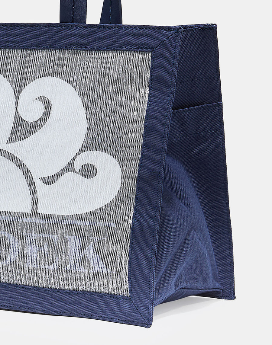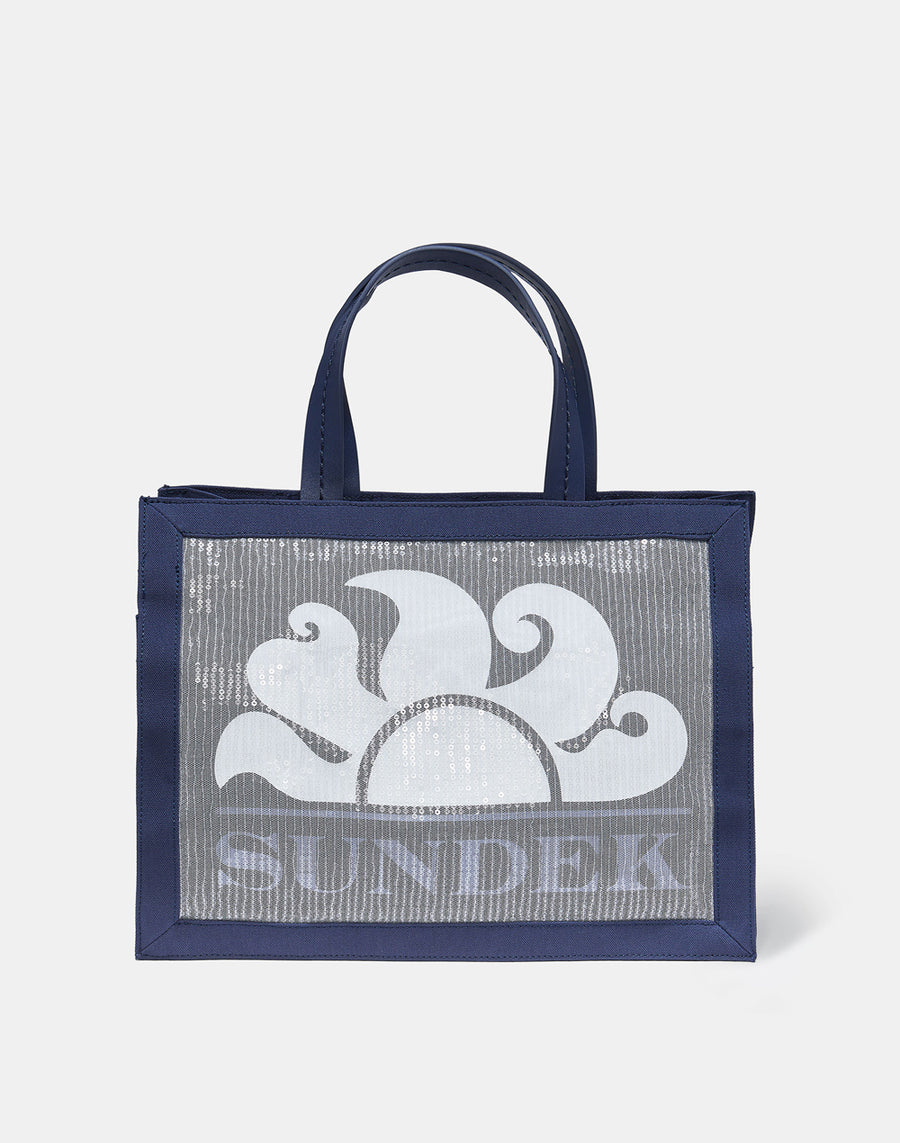 Medium mesh bag with sequinned details and a printed Sundek logo. This bag is perfect for the beach thanks to its fine mesh, designed to prevent sand from getting in. Appliquéd surfboard charm.