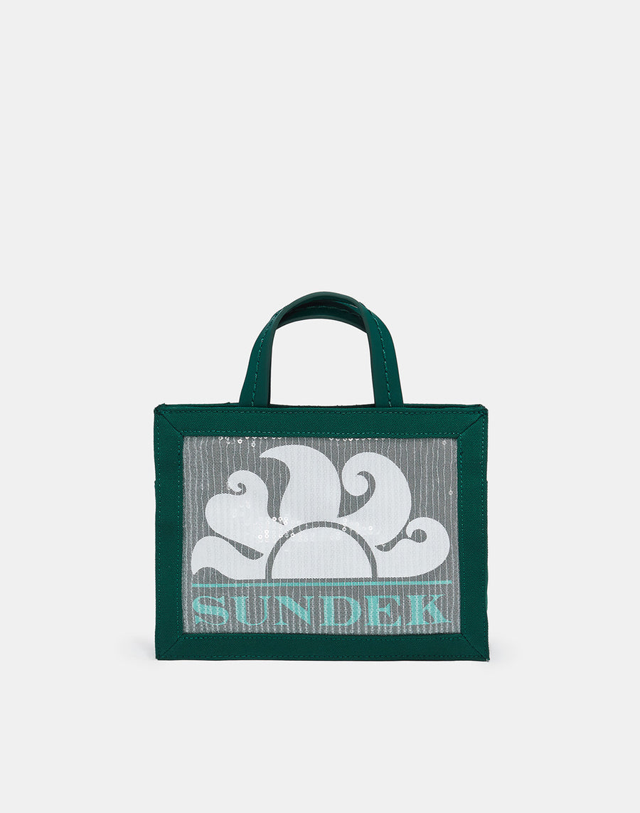 Small mesh bag with sequinned details and a printed Sundek logo. This bag is perfect for the beach thanks to its fine mesh, designed to prevent sand from getting in.