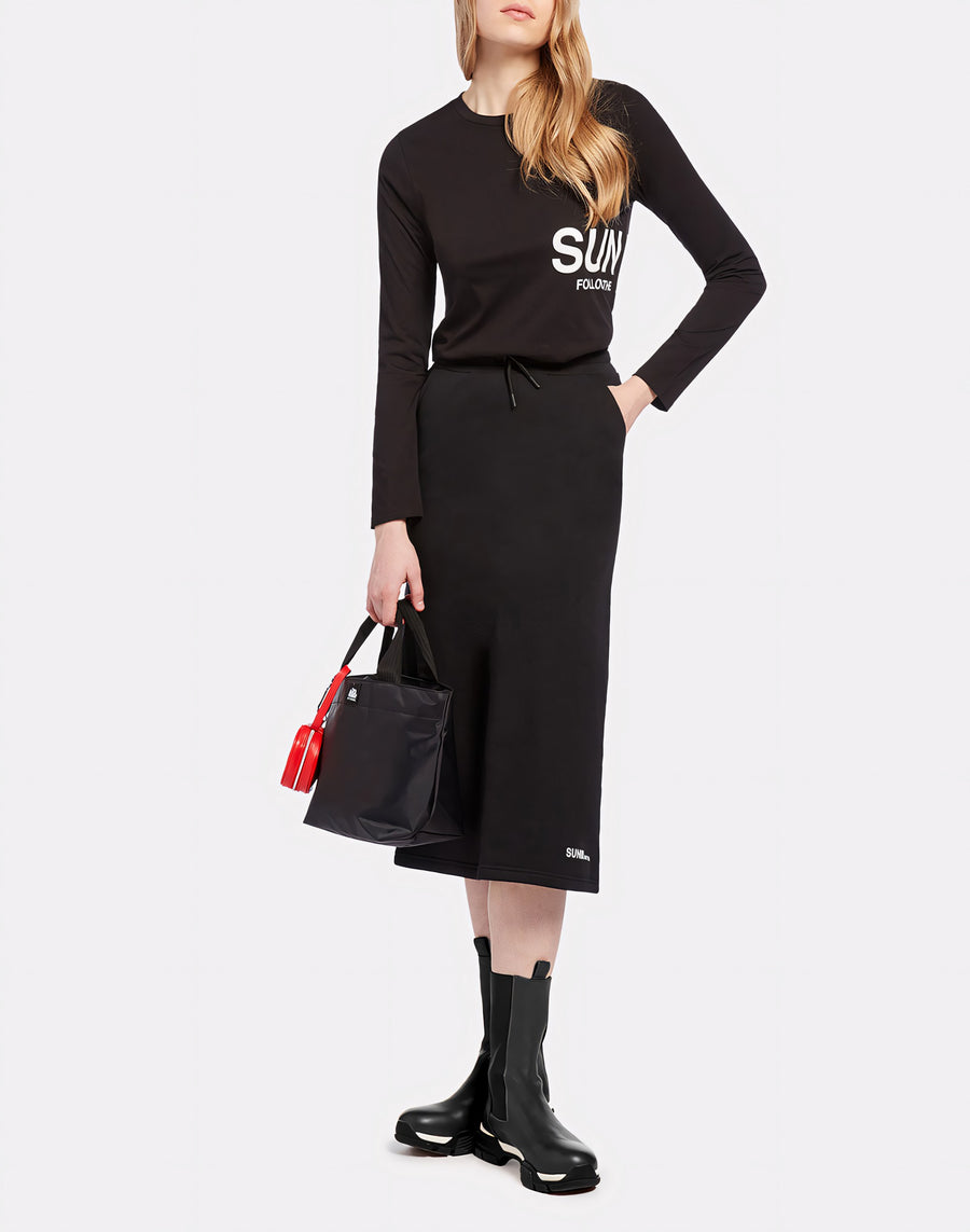 Long skirt made of fleece fabric with elasticated waist