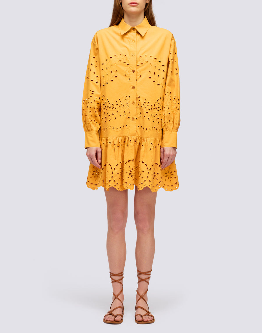 Women's sangallo cotton short dress, elegant and ideal for special occasions.