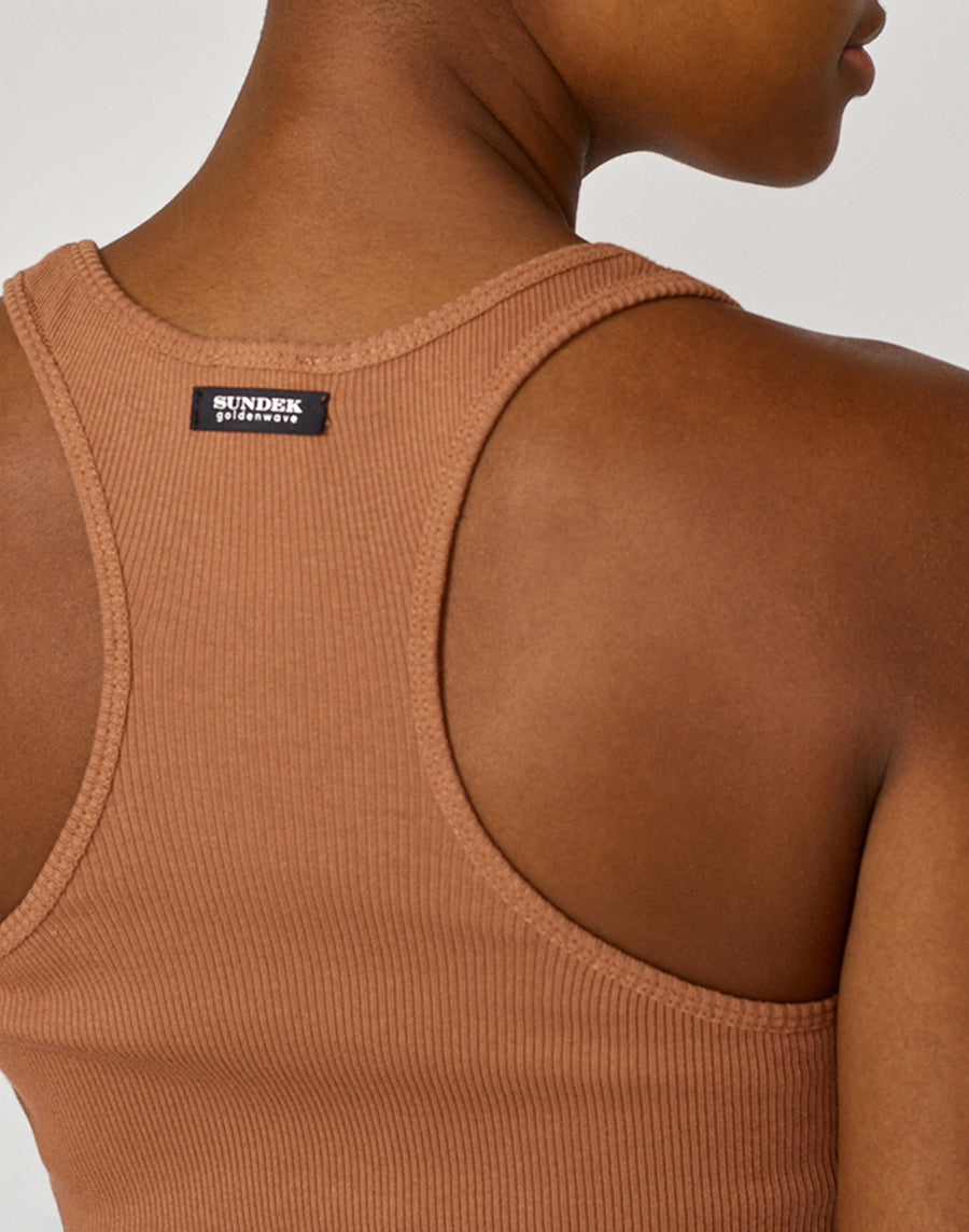 Women's rib tank top with contrasting cotton piping, perfect for creating layered looks. A super versatile model, it is ideal for all the most informal occasions.