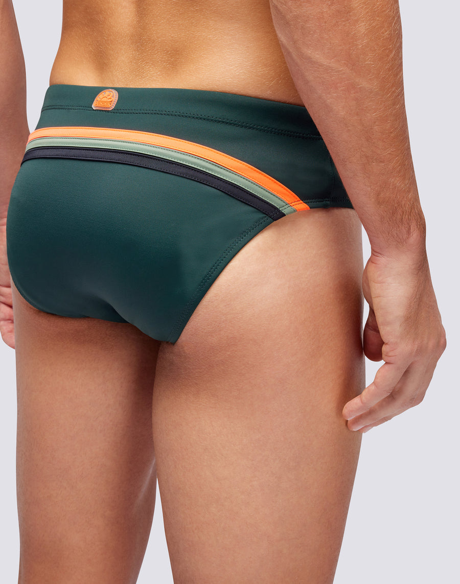 Add a touch of color to your days at the beach with our men's swim briefs with the iconic Sundek rainbow. It offers comfort during swimming and bathing both at the sea and in the pool.