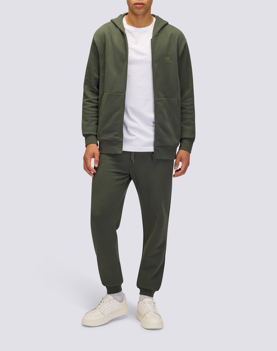 Men's brushed cotton sweatpants with an elastic waistband and a matching embroidered logo. Perfect for pairing with a sweatshirt for a practical and functional tracksuit. Regular fit.