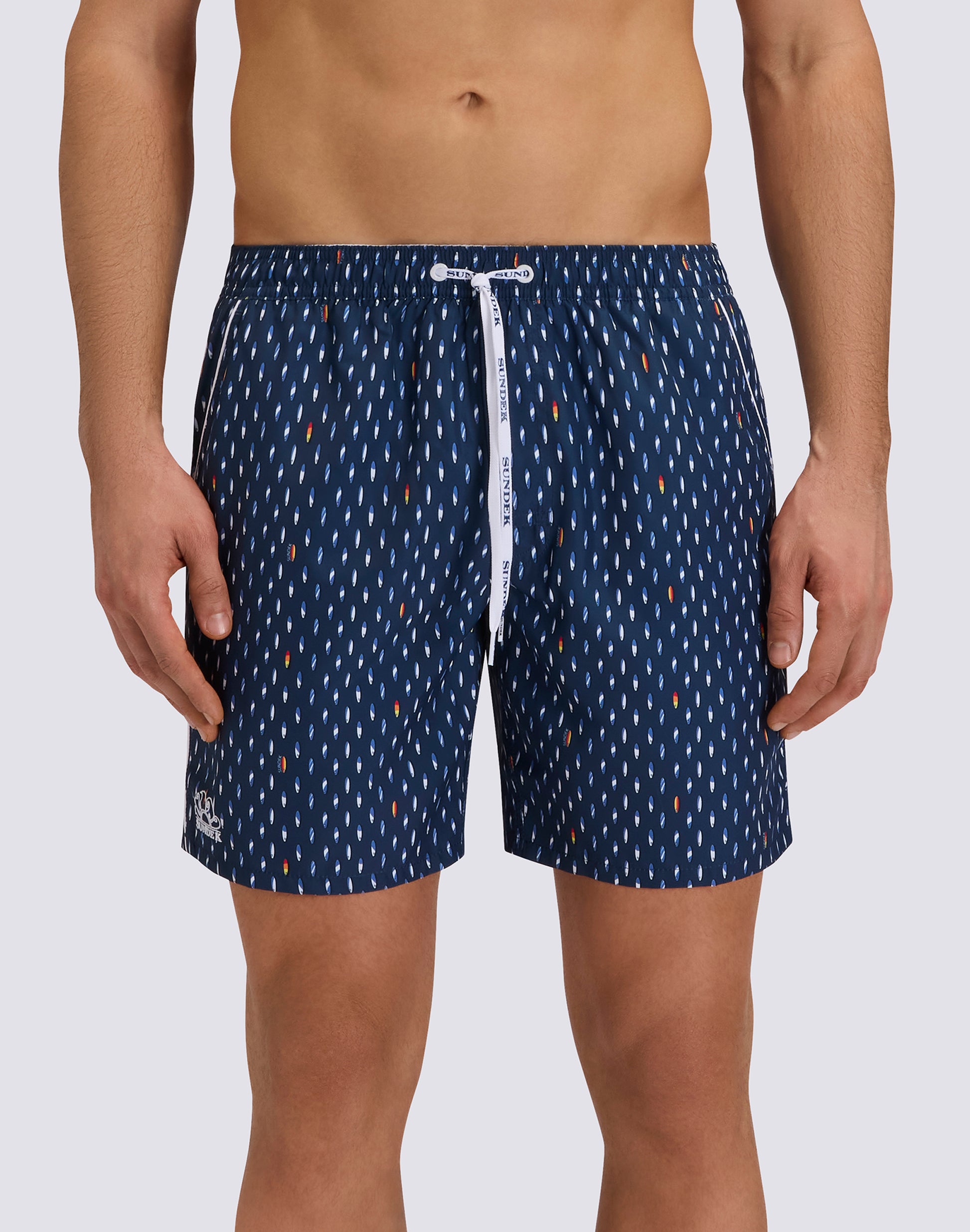 MID-LENGTH SWIMSHORTS WITH ELASTICATED WAIST AND RICE SURF PRINT IN REPREVE® RECYCLED POLYESTER