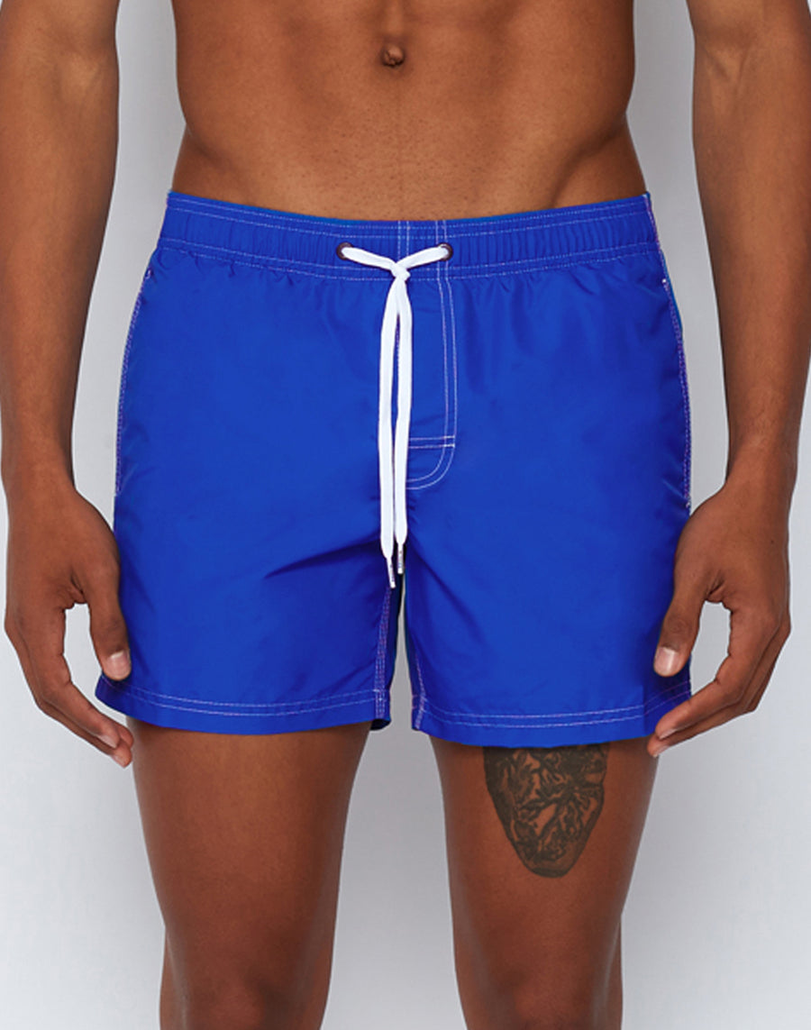 Short men's swim shorts with an elasticized waist, drawstring and iconic Sundek rainbow on the back. This swimsuit is made with three-needle stitching and 100 percent with our historic fabric, nylon-taffeta: silky smooth, lightweight and resistant to everything, it dries super fast to give you comfort anywhere, in the waves and out of the water.
