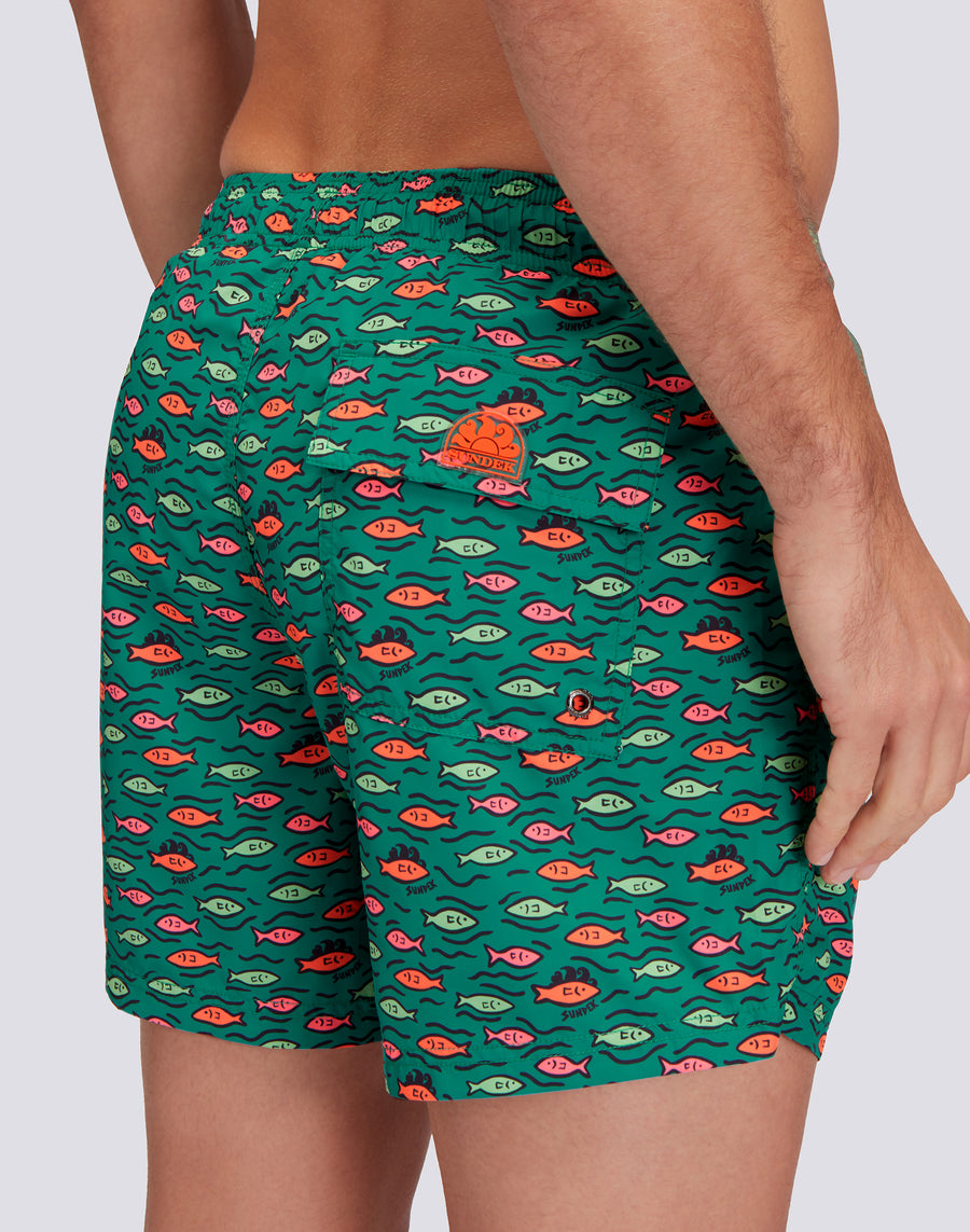 RECYCLED POLY SHORT SWIMSHORTS WITH ELASTIC WAIST FISHBALL PRINT