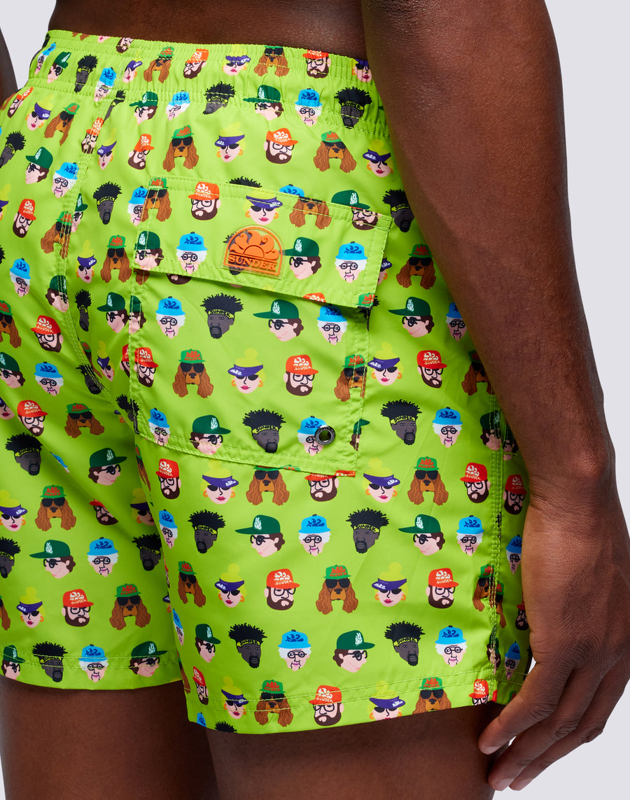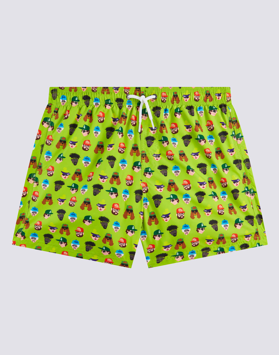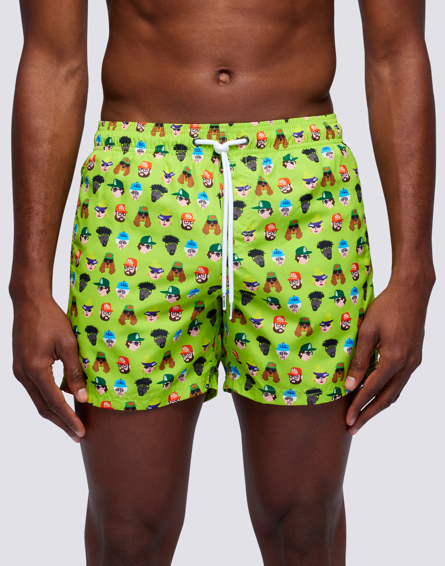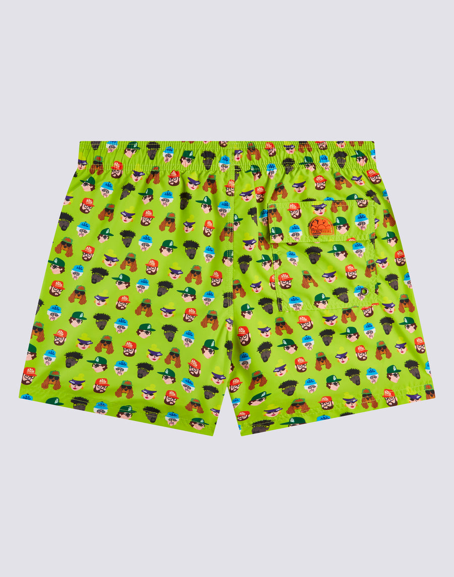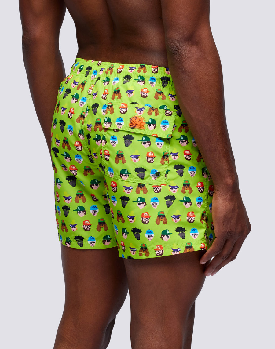 GUESS WHO MICROPRINT ELASTICATED WAIST SHORT SWIMSHORTS