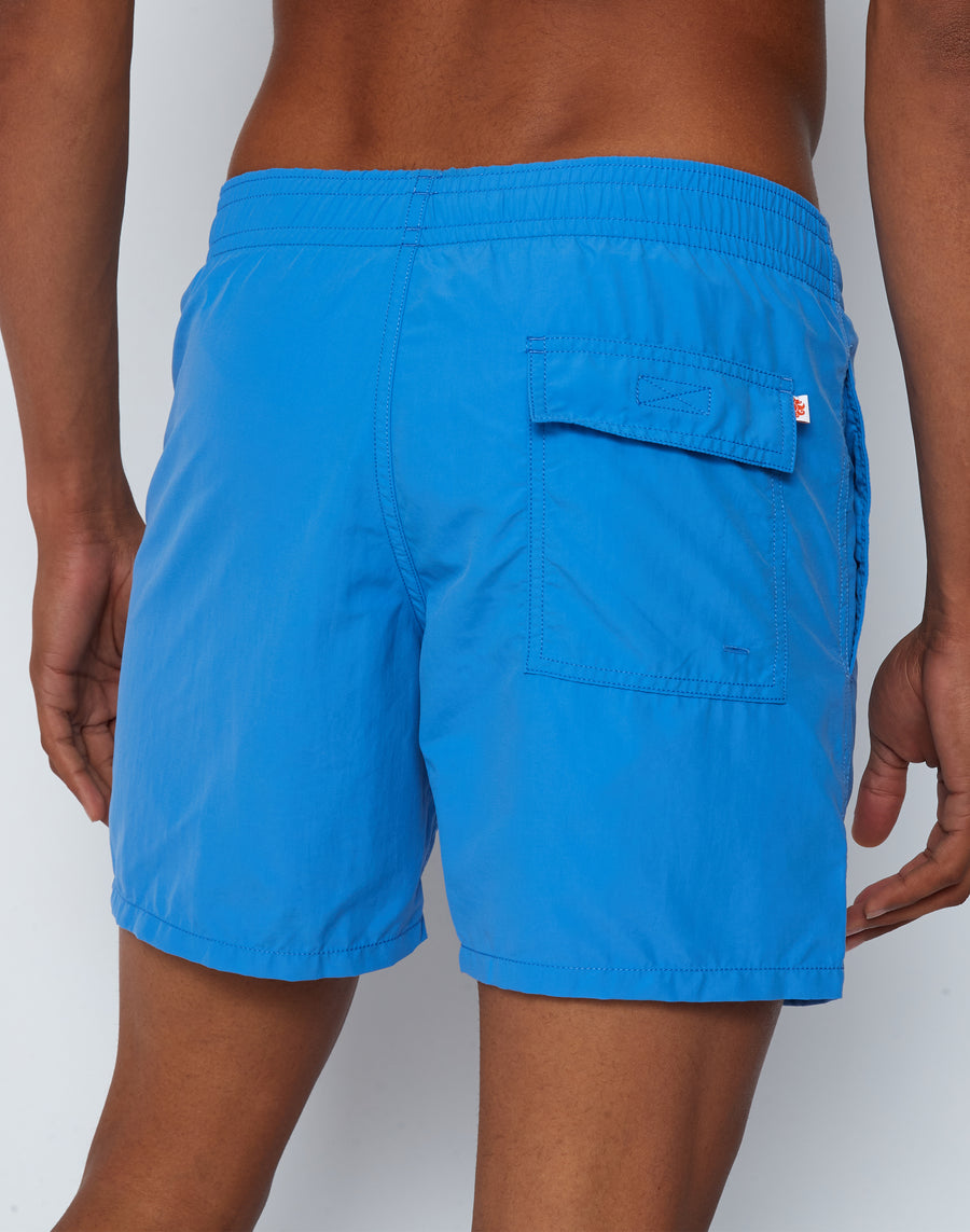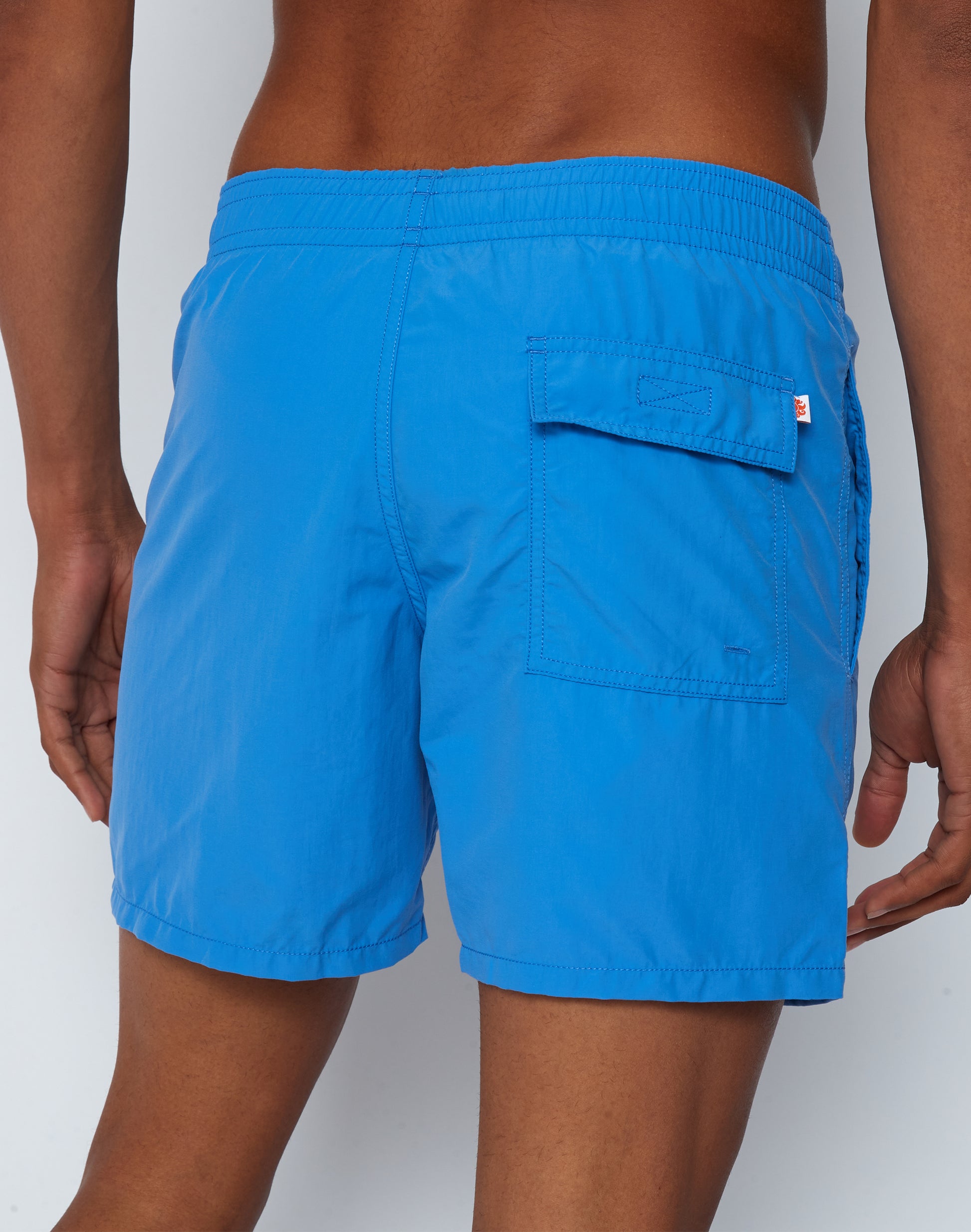 Men's medium length swimming costume with elasticated waist. Lightweight, durable, quick-drying and keeps its shape over time thanks to the technical micropeach nylon fabric. It features our classic three-needle stitching for increased tensile strength.