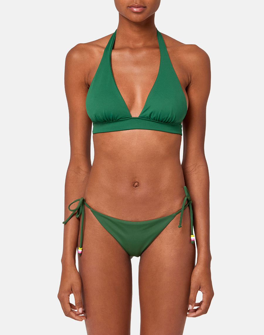 Made from sustainable and comfortable fabric, these briefs can be adjusted at the sides thanks to the ties, which are embellished with three multicoloured beads. Pair them with the matching bikini top to create a fun and eye-catching holiday look.