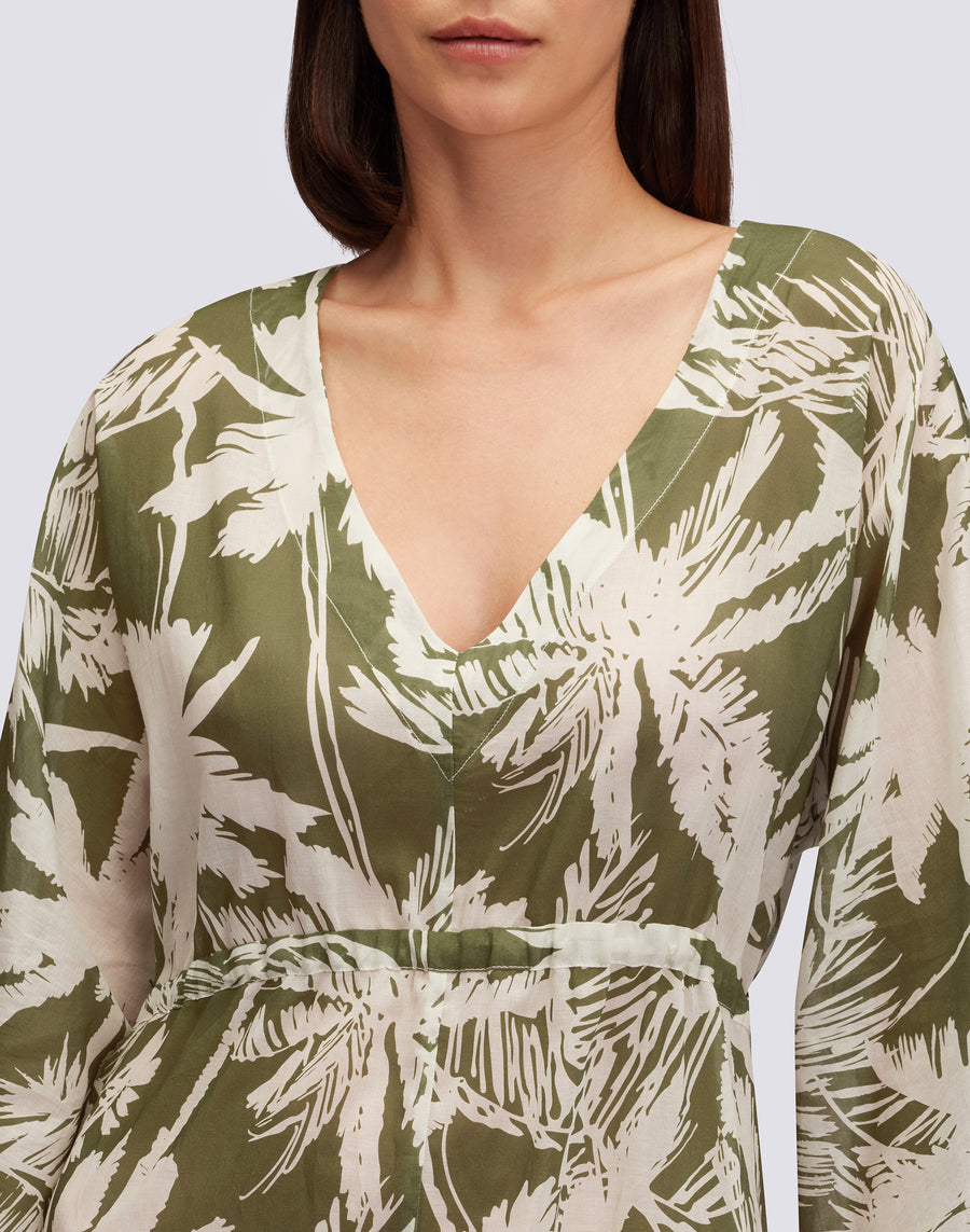 COTTON VOILE LONG DRESS WITH TROPIC SAVANNAH PRINT