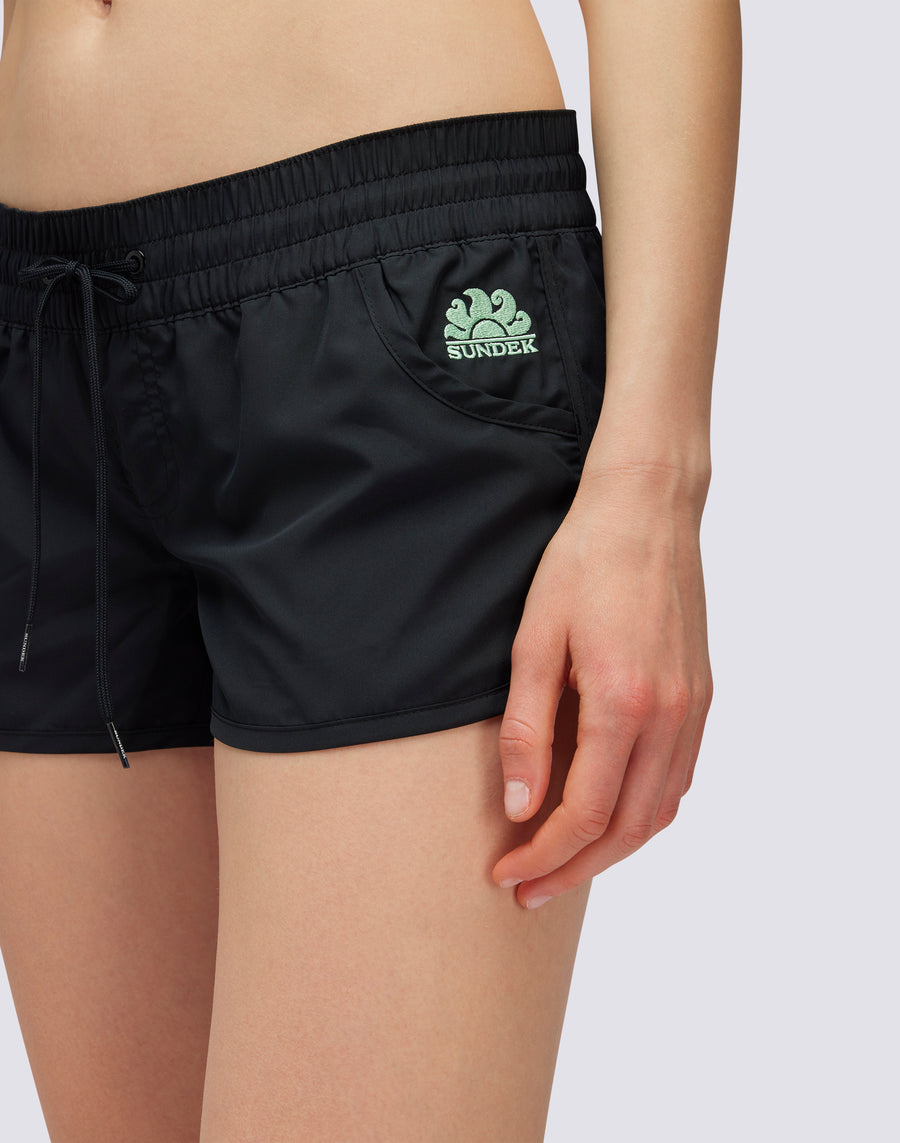 Made from eco-friendly Repreve fabric, this women's shorts is available in various colours. The back features the unmistakable Sundek rainbow, for a unique style.