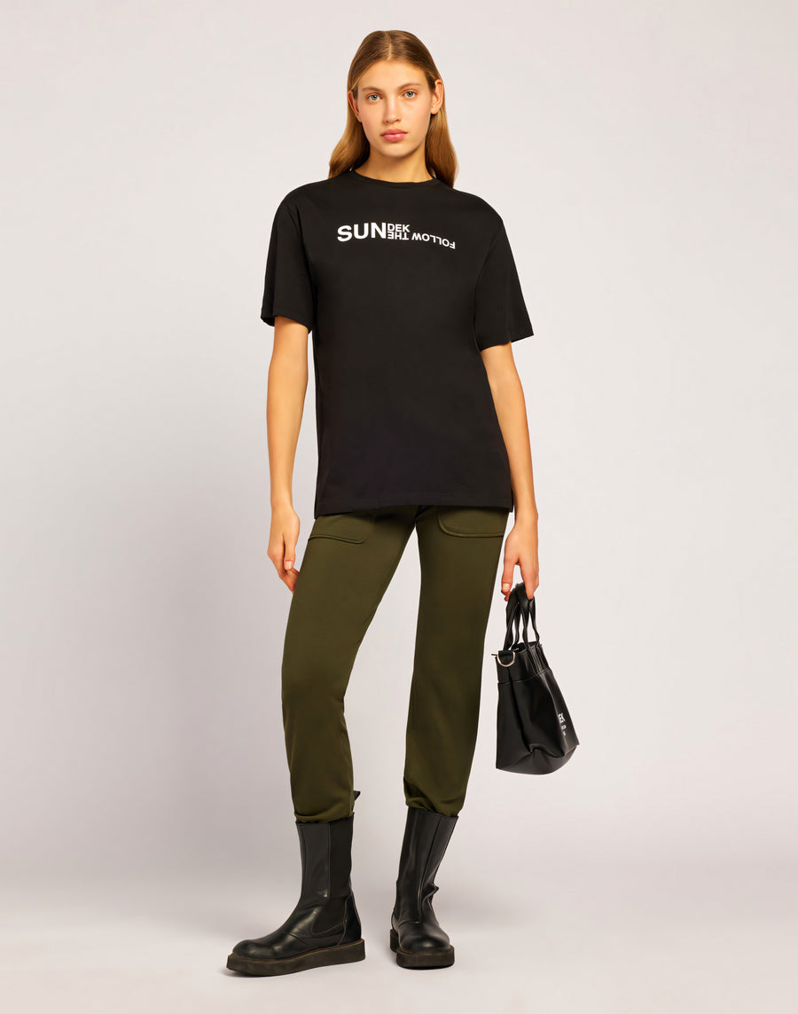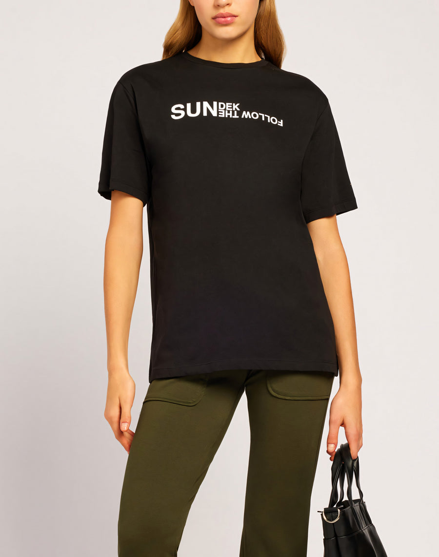 Women's oversized T-shirt with Sundek logo to wear as a base for all your casual and leisure time looks. This soft and comfortable women's maxi t-shirt will immediately become a joker in your wardrobe dedicated to casual outfits: perfect for travel, free time and all informal occasions. A garment for all seasons with an oversize fit.