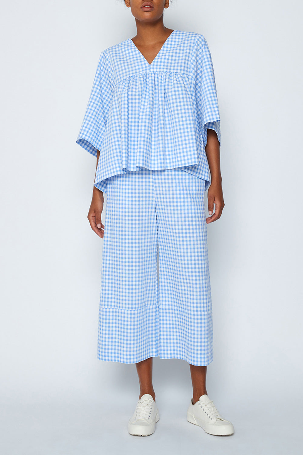 Loose fit, high waist, cropped cut and check print for these easy-to-match trousers, to wear all summer long, perfect with sneakers and sandals.