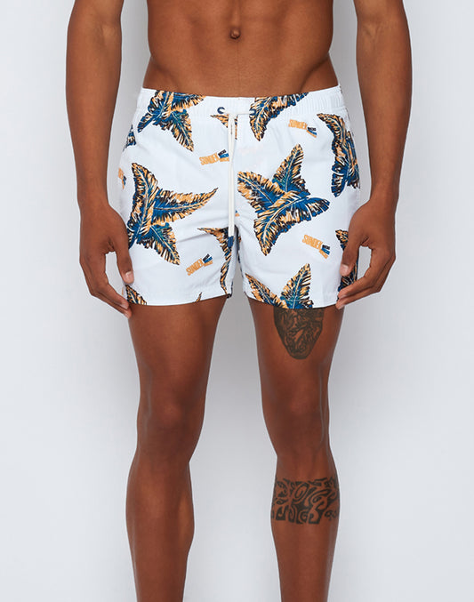 TRAJE DE BAÑO CORTO CON ESTAMPADO DE CAMUFLAJE Y CINTURA ELÁSTICA