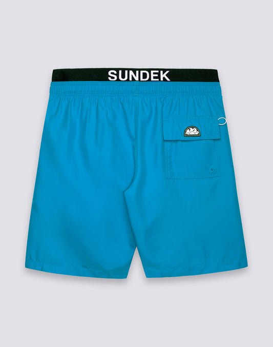 BAÑADOR DE CINTURA MEDIA SEMIELÁSTICA CON BOLSILLO TERMOSOLDADO