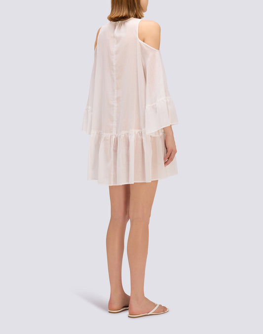 VESTIDO CORTO CON HOMBROS DESCUBIERTOS EN GASA DE ALGODÓN