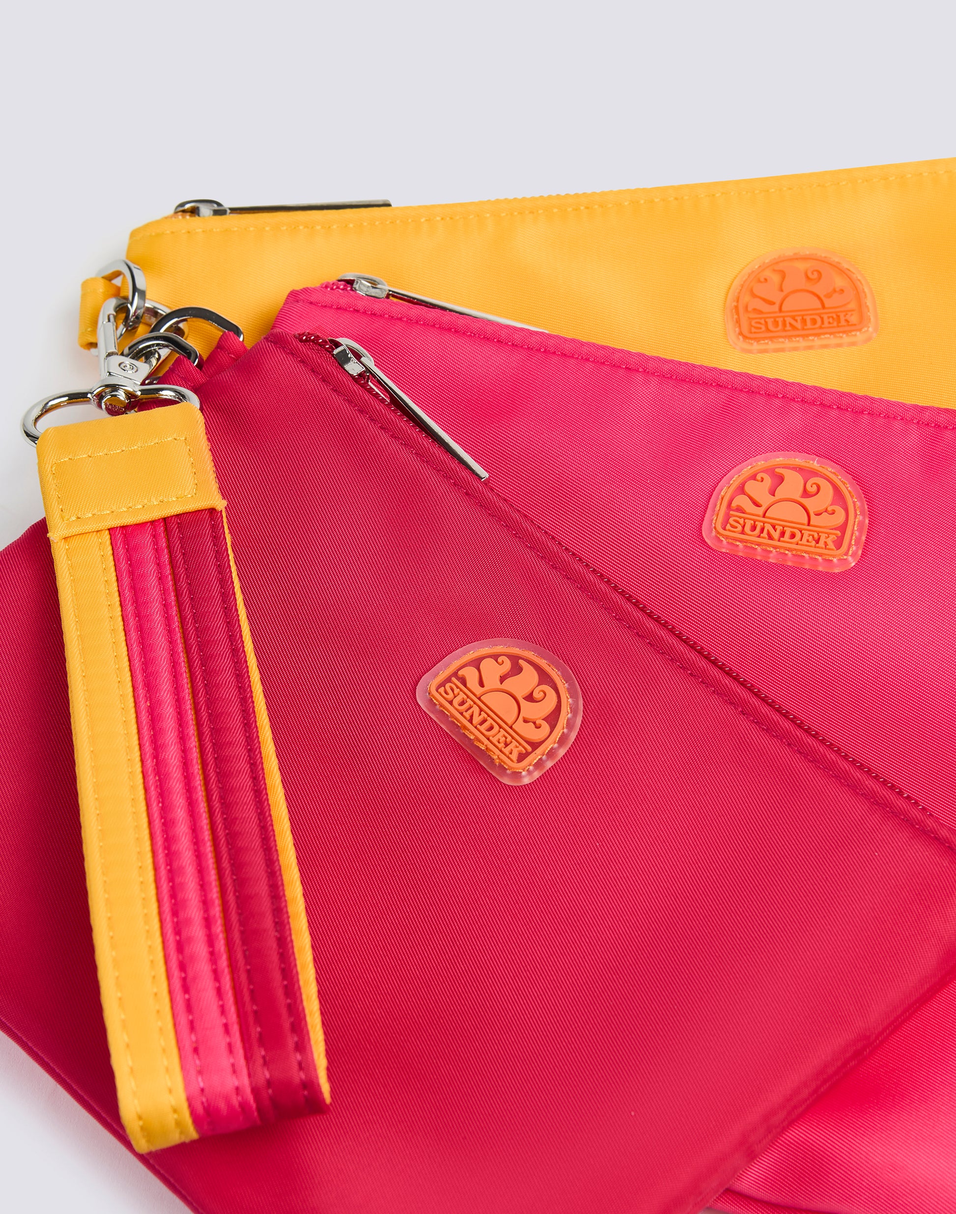 Mini cartera formada por 3 bolsitas de diferentes tamaños con llavero desmontable y detalles de arcoíris. Imprescindible para llevar siempre contigo y guardar tarjetas, llaves, monedas y objetos pequeños.