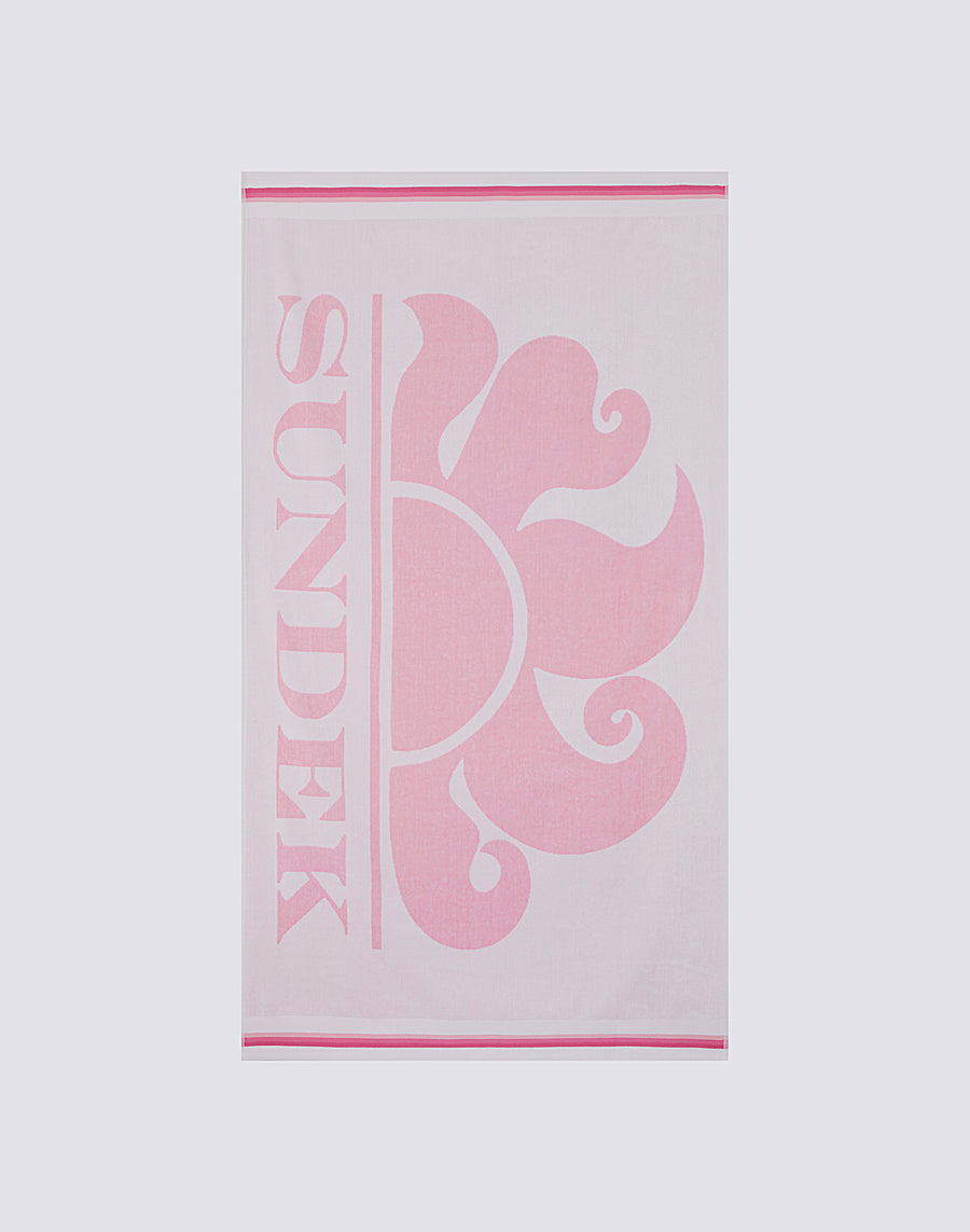 Un toque de color vivo para tu descanso y tus actividades de vacaciones con esta toalla de playa de rizo suave con maxilogotipo y ribetes arcoíris.