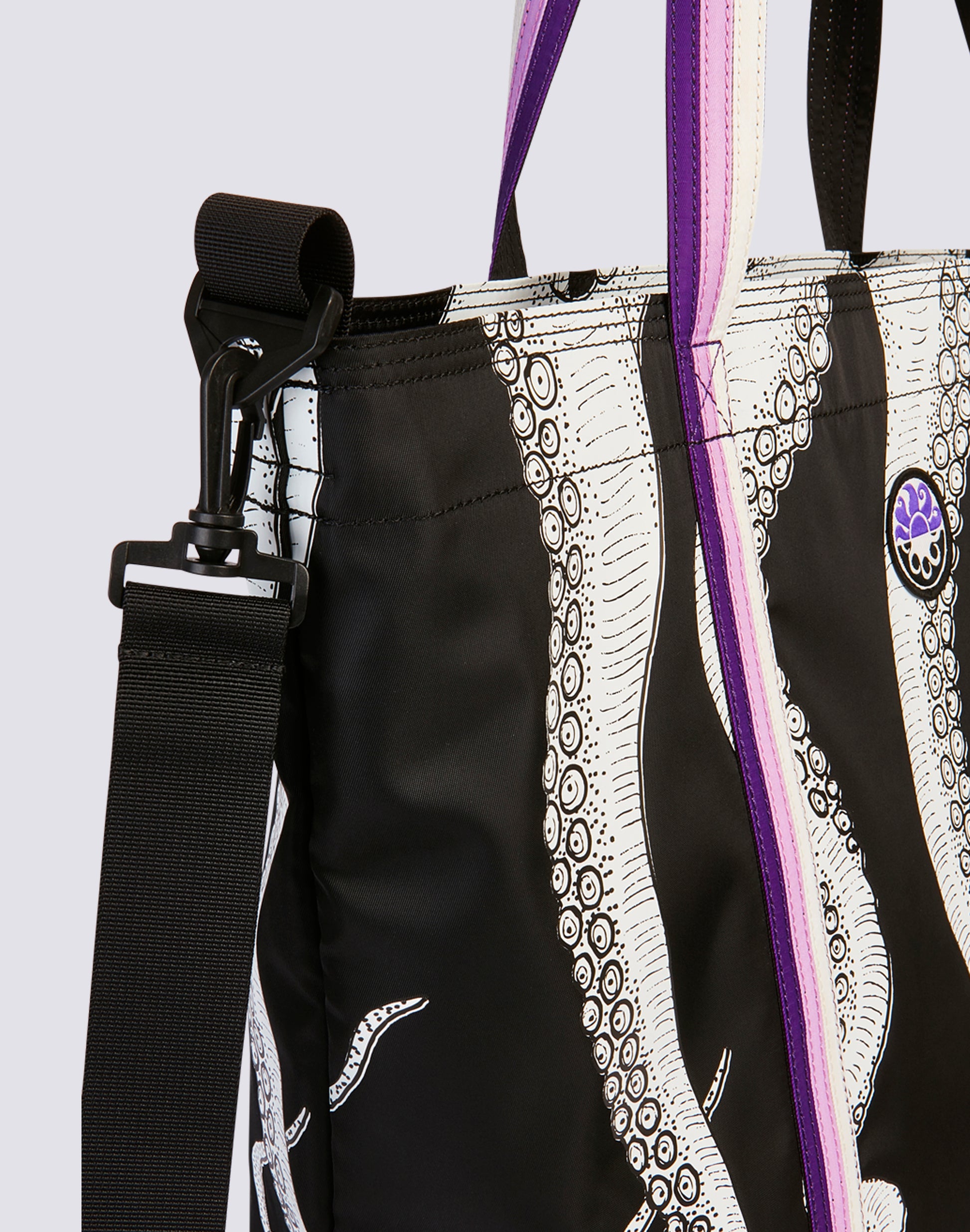 De la colaboración entre Sundek y Octopus nace esta bolsa de playa. Inconfundible gracias al detalle del asa arcoíris en el hombro y al estampado de tentáculos, versátil gracias a la correa para el hombro para que puedas llevarlo como quieras, es el bolso tote que podrás llevar contigo todo el verano: de vacaciones, de viaje y por la ciudad, combinado con tus conjuntos informales.