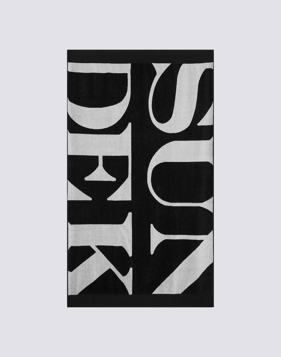 Expresa tu pasión por Sundek con esta toalla de playa de rizo jacquard con maxilogotipo en contraste. Un toque gráfico llamativo perfecto para tu descanso.