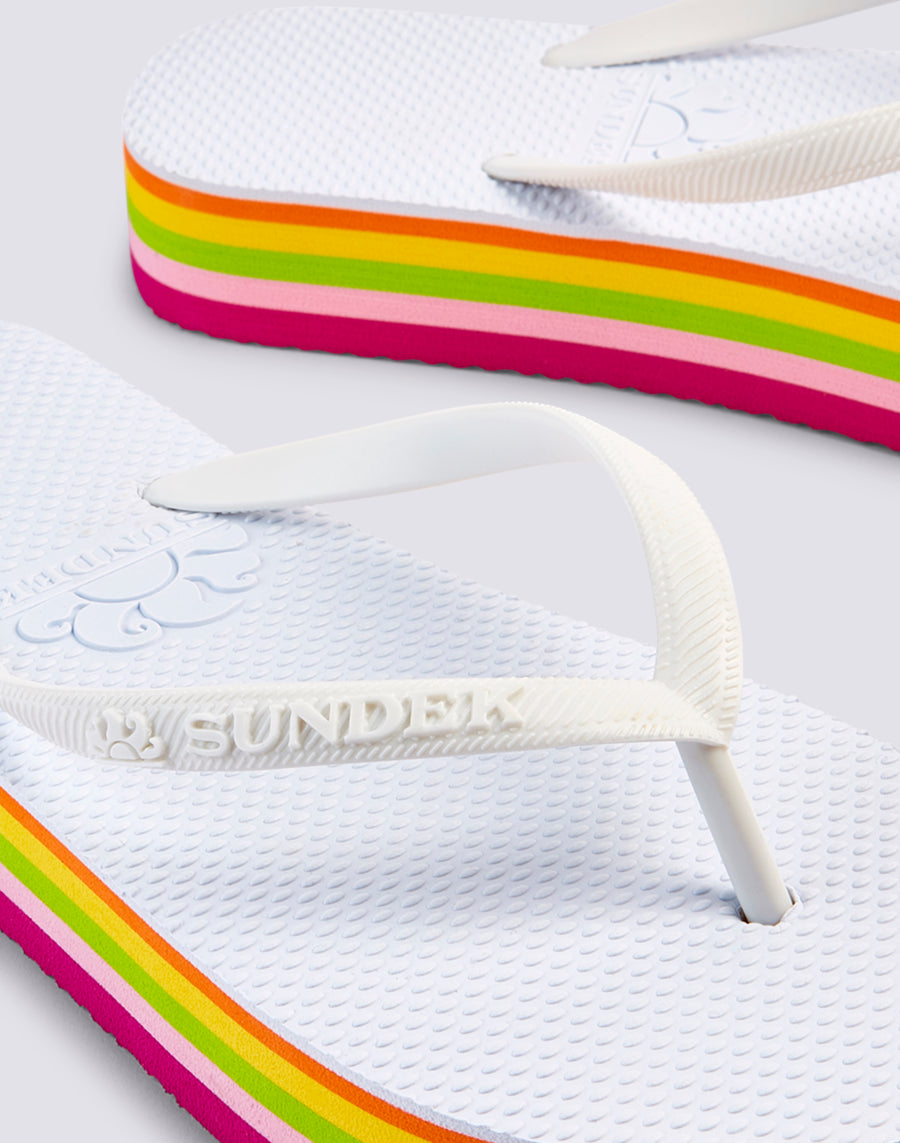 Si nunca renuncias a la plataforma, elígela también para tus chanclas de playa de dedo: actuales, ligeras, cómodas y con el detalle multicolor que completa la suela extra.