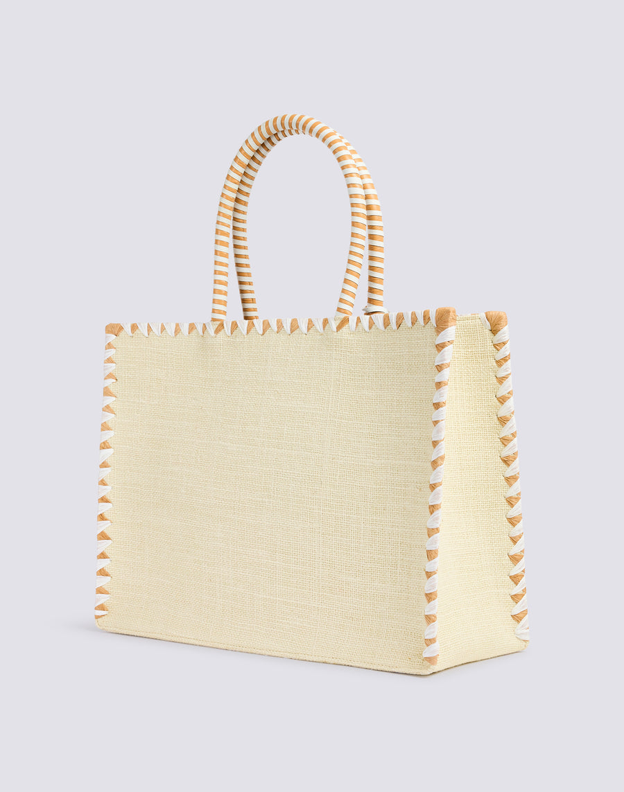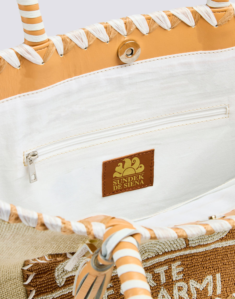LONA 100% ALGODÓN RAFIA NATURAL 100% PIEL DE CORDERO PERLAS DE CRISTAL FORRO 100% ALGODÓN
