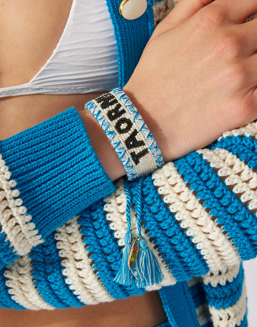 PERLAS DE CRISTAL AMULETO DE METAL 100% ALGODÓN