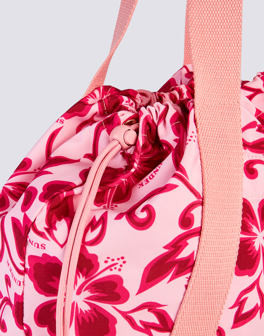 AVA - BOLSO DE NYLON CON ASAS Y CORDONES ESTAMPADO HIBISCUS SK23