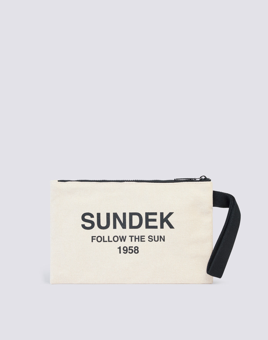 Logotipo y eslogan Sundek Contraste impreso en el frente