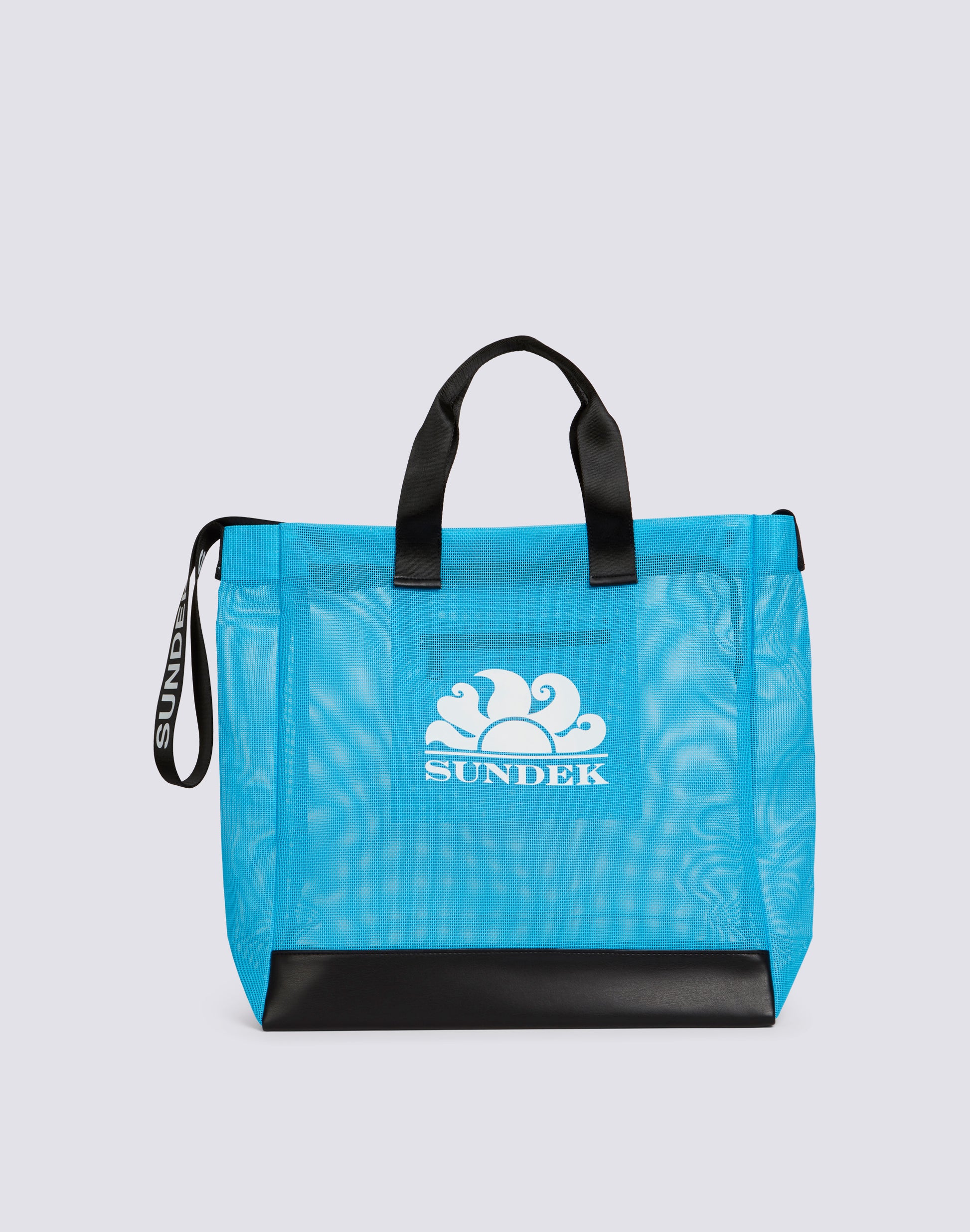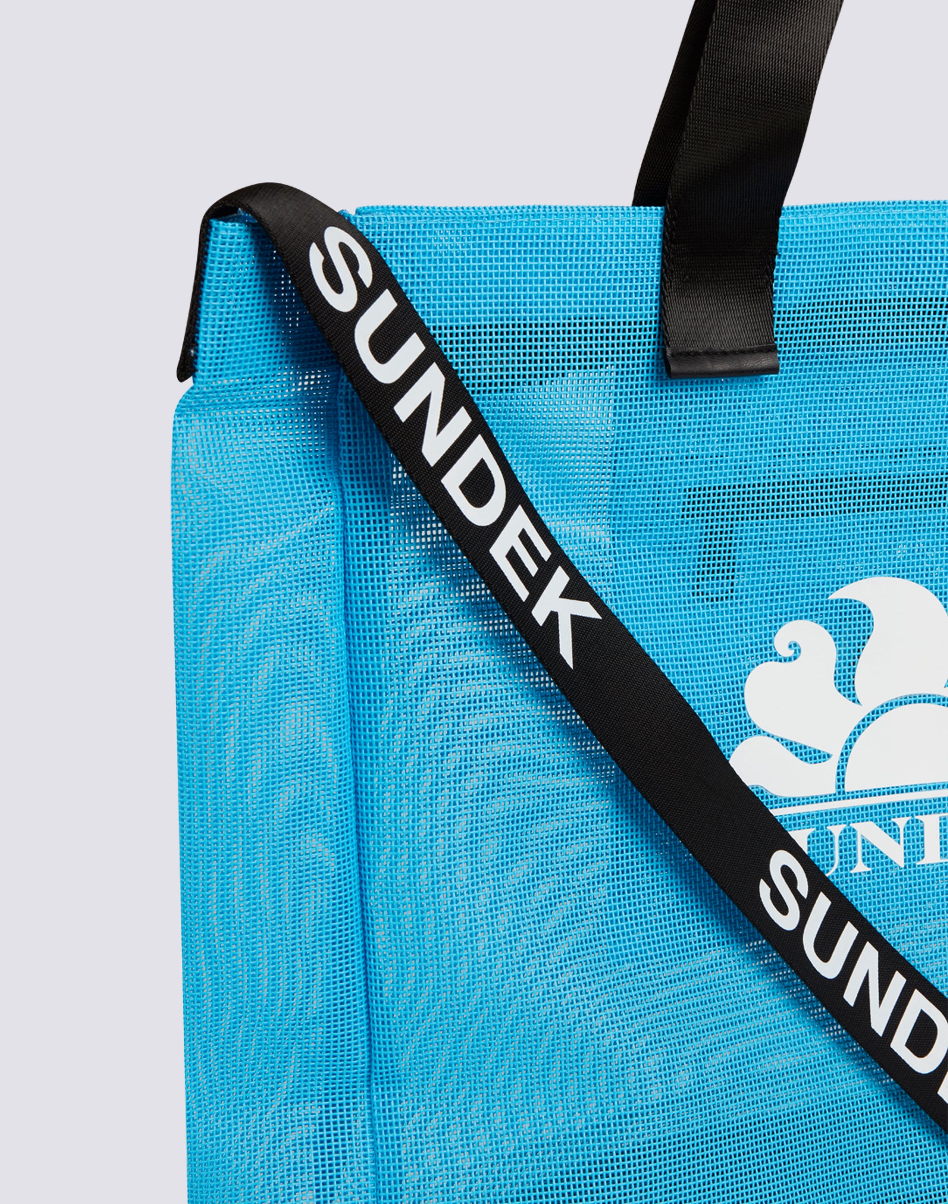 Bolsa de playa de malla con logotipo grande de Sundek. Amplia e ideal para llevar todo lo necesario para un día de playa.